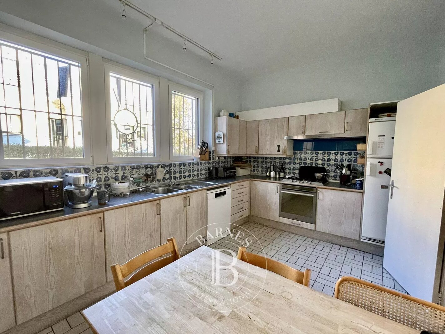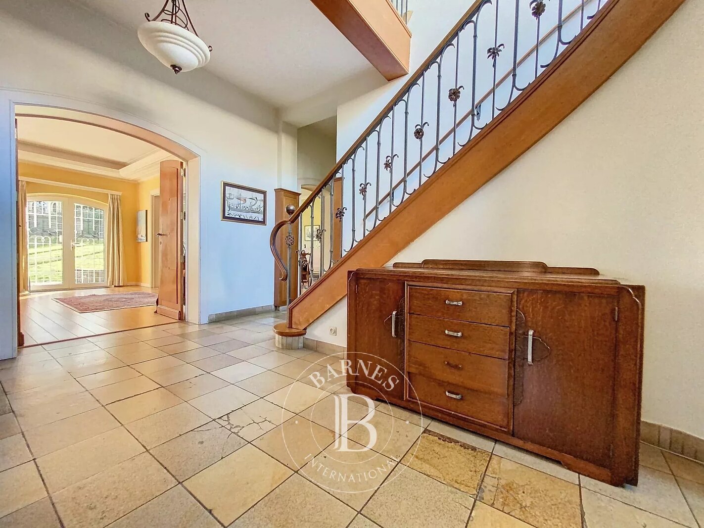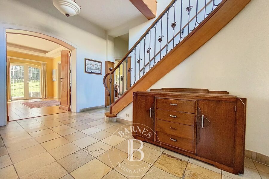 Au rez-de-chaussée, un hall d’entrée, une toilette invités, un vestiaire, un bureau, de belles réceptions lumineuses avec feu ouvert (72m2) donnant accès à une belle terrasse et un superbe jardin orienté Sud-Est, une cuisine séparée avec une arrière cuisine et enfin, une grande chambre de 19m2 avec sa salle de bains attenante.