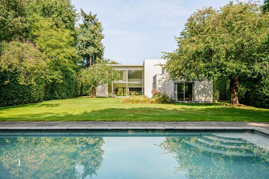 Aan het einde van een doodlopende straat, discreet verscholen maar toch in het bruisende centrum van Sint-Martens-Latem, verwelkomt deze eigentijdse villa u met een zeldzame combinatie van rust, privacy en verfijnd wooncomfort. Met een bewoonbare oppervlakte van 454 m² en een zuid georiënteerd perceel van 2.138 m², prachtig aangelegd en voorzien van een zwembad van 5 op 12 meter, vormt dit een unieke woonervaring op een absolute toplocatie.