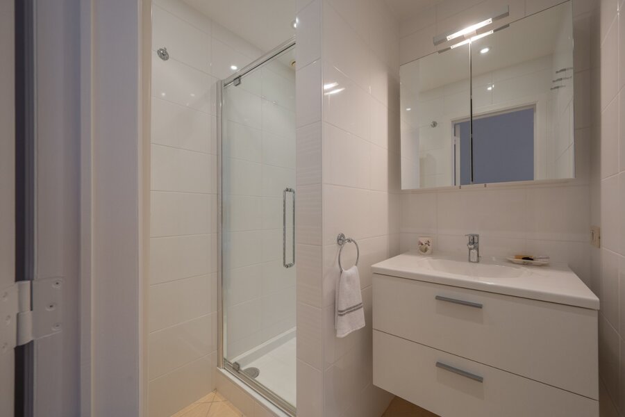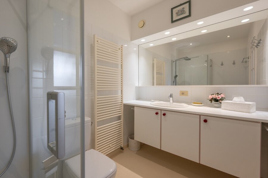 À l’étage, quatre chambres doubles. La chambre principale dispose de sa propre salle de bains. Une seconde chambre est équipée de sa salle de douche privative. Deux autres chambres se partagent une douche. Le grenier est entièrement aménagé et peut servir de cinquième chambre, de bureau ou d’espace de détente.