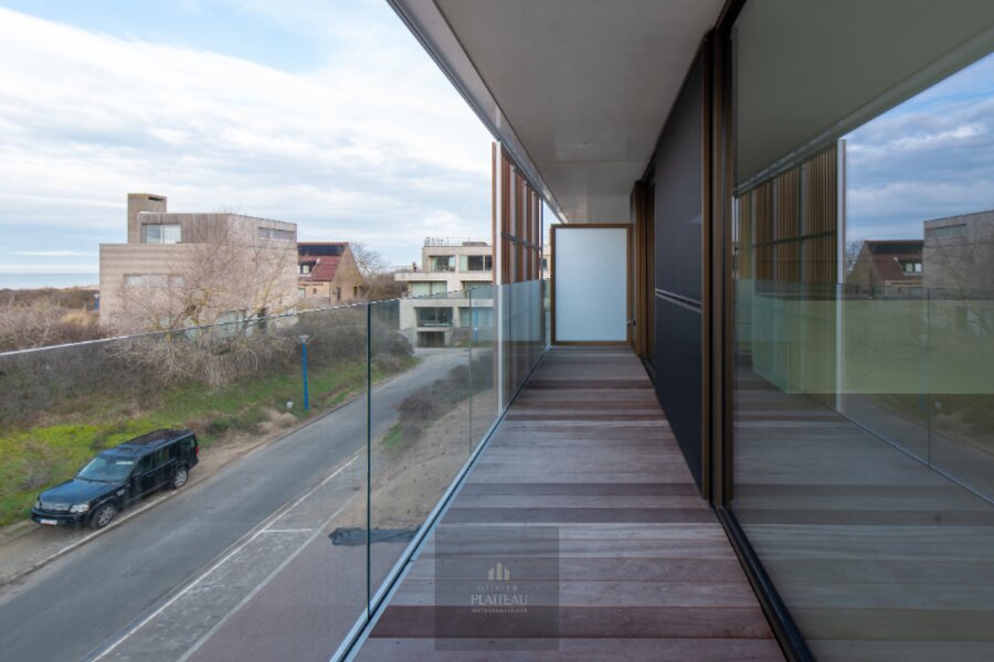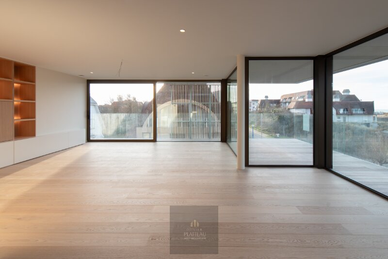 L'agencement est bien pensé et luxueux, avec un hall d'entrée équipé d'un vestiaire et de toilettes séparées pour les invités, un espace de vie spacieux avec de grandes baies vitrées et une cuisine ouverte de luxe aux finitions haut de gamme qui donne sur la terrasse avant, ainsi qu'un débarras pratique attenant à la cuisine. La chambre principale dispose d'une salle de bains privative avec double lavabo, douche et toilettes. Les deuxième et troisième chambres partagent une deuxième salle de bains avec douche et lavabo. Les trois chambres donnent sur la même terrasse arrière orientée au sud, ce qui garantit un maximum de lumière et de tranquillité. L'ensemble de l'appartement est équipé d'un parquet de qualité, qui contribue à son aspect chaleureux et élégant. L'appartement comprend également un garage souterrain très spacieux et un local à vélos séparé. Le bâtiment répond aux exigences énergétiques les plus élevées avec un label EPC A. La vente est soumise au régime de la TVA, la revente étant également possible. Il s'agit d'une offre extrêmement rare et exclusive dans l'un des endroits les plus prisés de la côte belge. Vente soumise au régime de la TVA. Plan au sol en annexe. EPC : label A. Prix demandé : 1 675 000€.