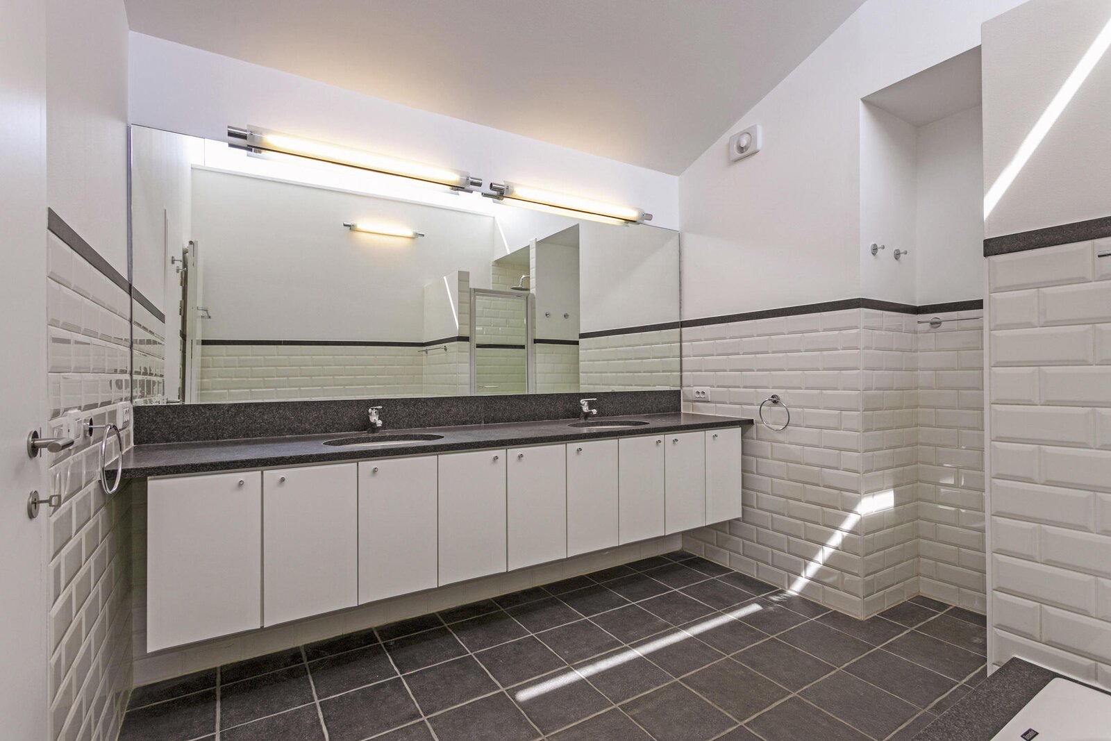 De brede gangen met vele ingemaakte kasten verbinden het leef- met het slaapgedeelte op een unieke manier. De skylights zorgen voor daglicht doorheen het gehele appartement.