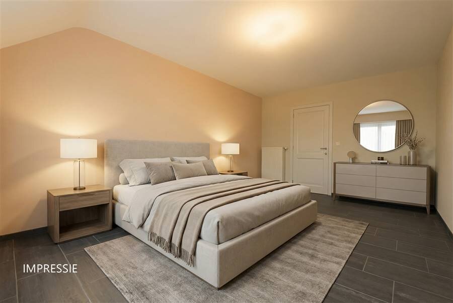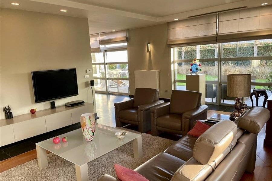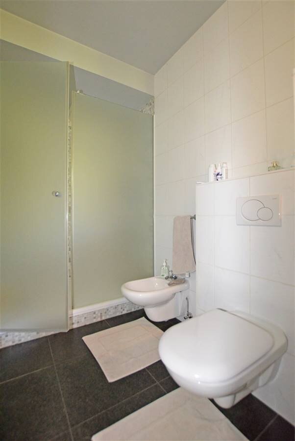 Op het gelijkvloers is er bovendien een nachtgedeelte met nachthal, dressing, ruime slaapkamer en een badkamer met ligbad, dubbele wastafel, toilet, bidet en douche.