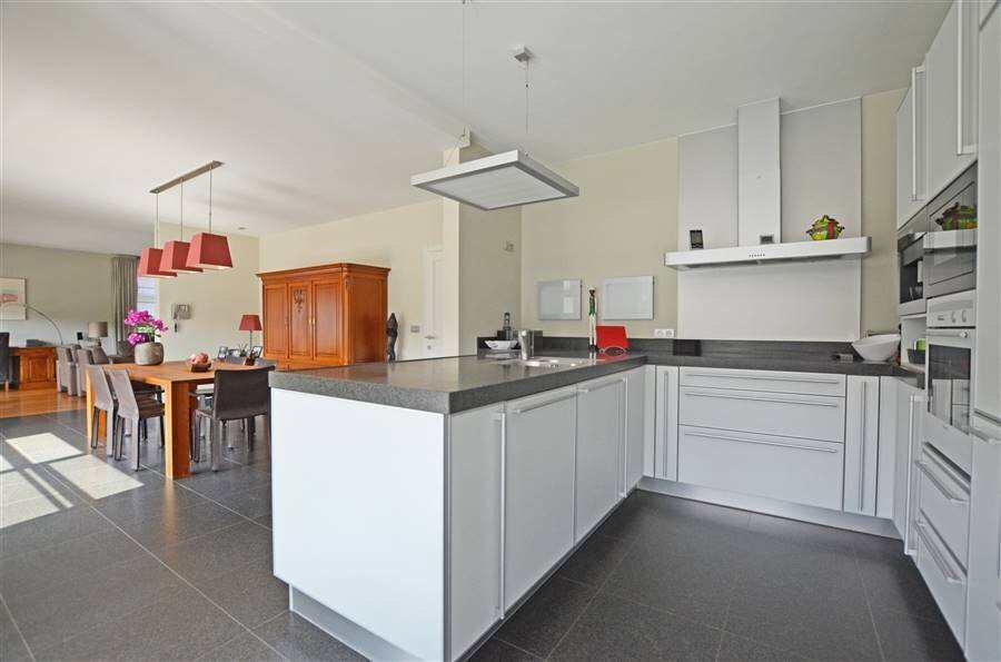 Aansluitend aan de keuken is er een bijkeuken die ook dienst doet als wasplaats en toegang biedt naar de inpandige garage met automatische poort.