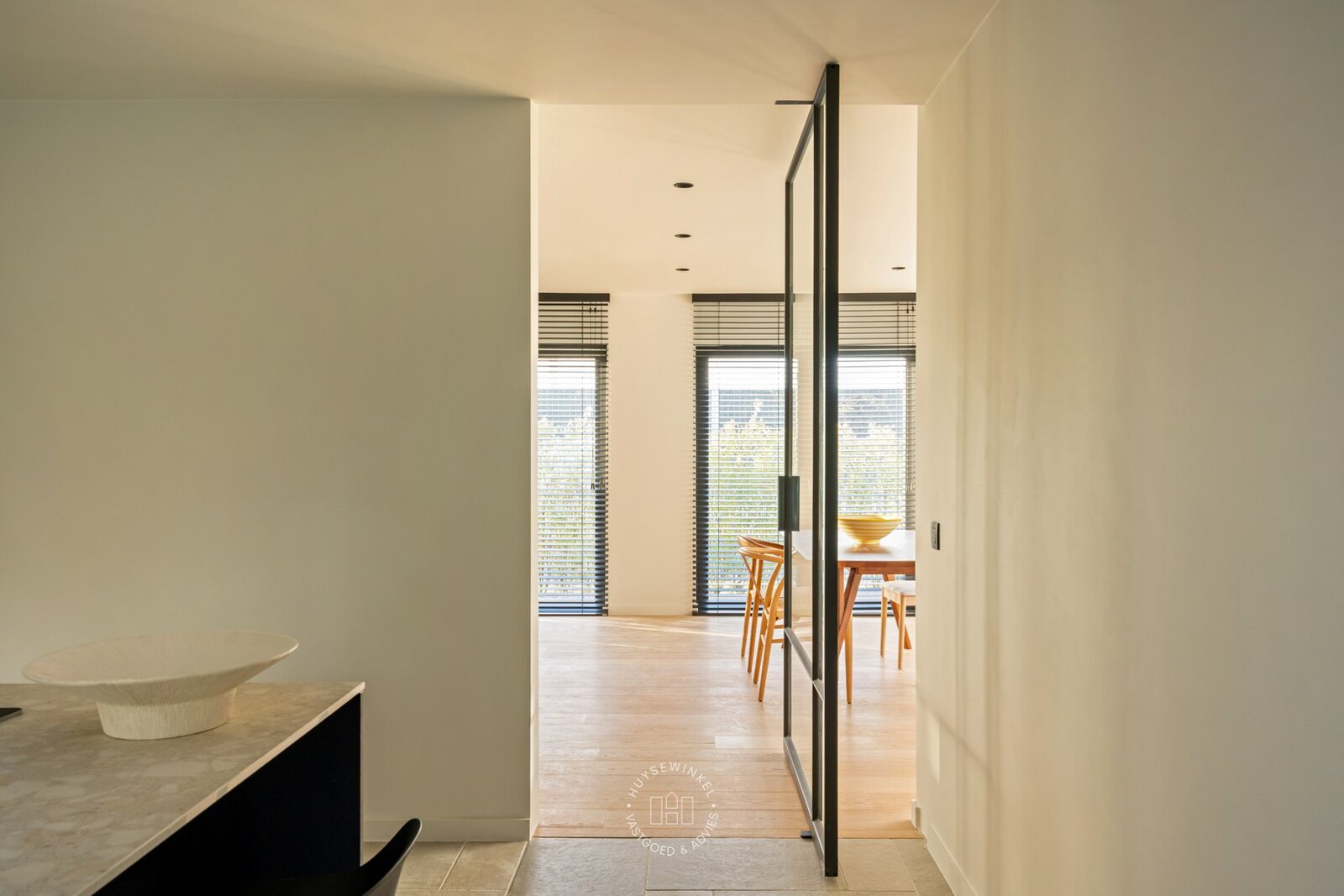 De woning combineert hoogwaardige materialen – waaronder stijlvolle parketvloeren en aluminium raamprofielen – met moderne technieken zoals zonnepanelen en een ventilatiesysteem D. Dit resulteert in een uiterst energie-efficiënte woning met EPC-label A.