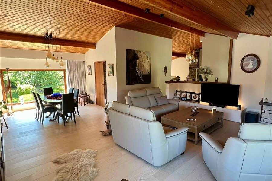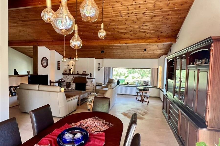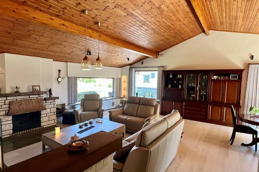 Située sur les collines en lisière de la ville de Renaix, en direction d’Ellezelles, cette villa parfaitement entretenue et pleine de caractère allie espace, confort et cadre verdoyant. Le hall d’entrée mène à un séjour lumineux avec accès à la terrasse, ainsi qu’à une cuisine entièrement équipée, une chambre à coucher avec dressing pratique et une salle de bain complète. Au rez-de-jardin, un salon convivial avec cheminée et bar, deux chambres à coucher supplémentaires, une deuxième salle de bain, une buanderie et un double garage offrent tout le confort et la polyvalence nécessaires. À l’extérieur, vous profitez d’un jardin magnifiquement aménagé, véritable havre de paix avec terrasses, étang, abri de jardin et cave extérieure. Cette villa clé en main, au charme intemporel, constitue une opportunité unique pour ceux qui souhaitent vivre dans un environnement verdoyant mais facilement accessible. Intéressé(e) ? Appelez le 055 21 48 08 pour une visite.