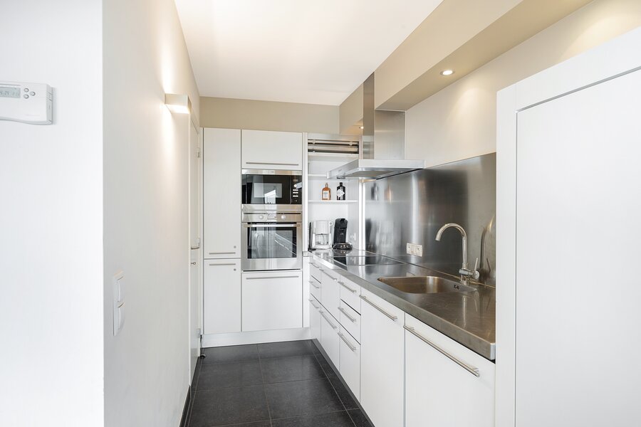 Indeling: Benedenverdieping: Een gezellige woonkamer met toegang tot een zonnig terras. Vestiaire en gastentoilet. Een ruime, volledig uitgeruste open keuken met eethoek en een berging met aansluiting voor een wasmachine.