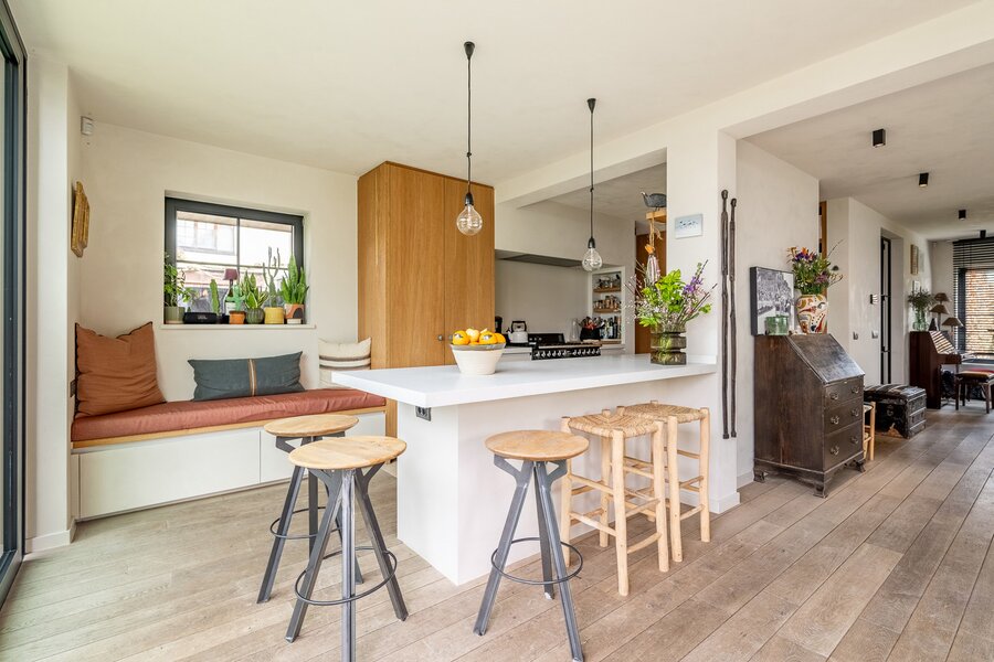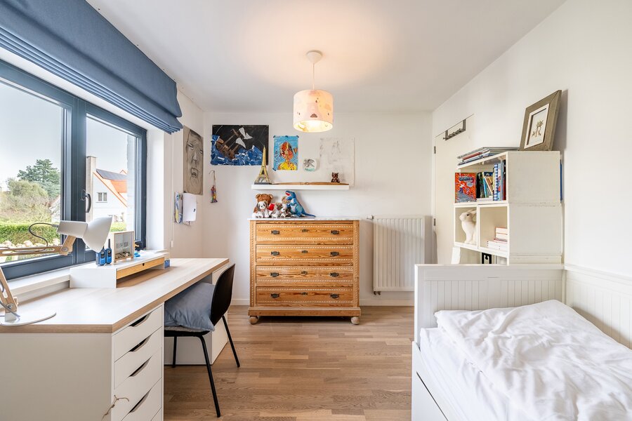 Le deuxième étage offre deux pièces supplémentaires, ce qui rend la maison particulièrement adaptée aux familles.