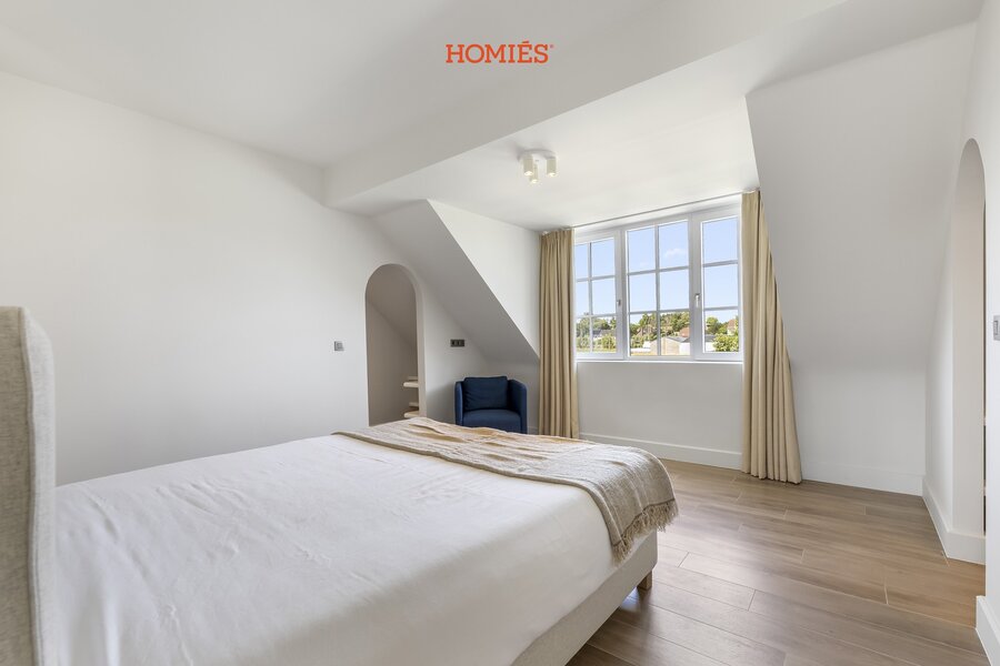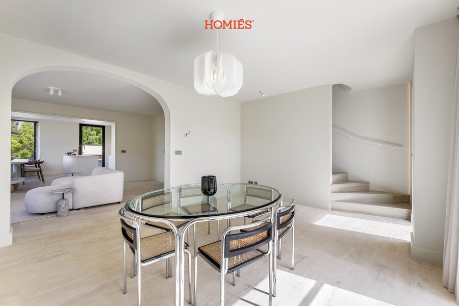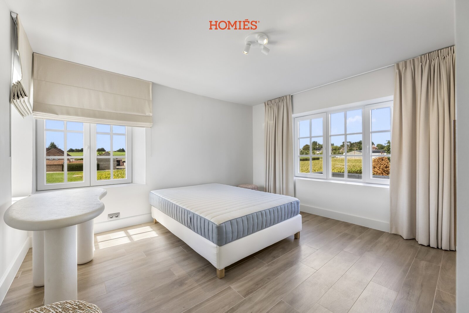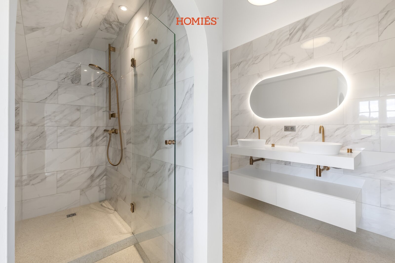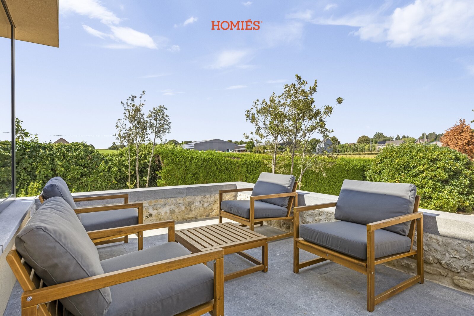 Welkom bij deze adembenemende villa (vernieuwbouw), gelegen op een prachtig perceel van 10 are 46 centiare. Deze woning combineert hedendaags comfort met een verfijnde esthetiek, dankzij de zorgvuldige afwerking met hoogwaardige materialen. Bij binnenkomst in de villa wordt u verwelkomd in een open en lichte ruimte. De begane grond herbergt een schitterende open keuken die overgaat in de eetplaats. De ruime woonkamer biedt een gezellige sfeer, perfect voor knusse avonden. Aansluitend vindt u een functionele bureau, ideaal voor thuiswerken of studeren. Verder is er op deze verdieping een praktische wasplaats en een stijlvol afgewerkt toilet. De eerste verdieping biedt twee ruime slaapkamers, elk voorzien van een eigen badkamer met een luxe inloopdouche. De hoofdslaapkamer beschikt over een dubbele lavabo, wat zorgt voor extra comfort. Daarnaast is er een apart toilet op deze verdieping, wat de privacy en het gemak voor de bewoners verhoogt. Op de tweede verdieping bevindt zich de indrukwekkende master bedroom. Deze royale ruimte is uitgerust met een ruime dressing en een eigen badkamer, compleet met een inloopdouche en een apart toilet. De afwerking van deze ruimte straalt luxe en elegantie uit, waardoor het een ware oase van rust is. De buitenruimte van deze villa is net zo indrukwekkend als het interieur. Een prachtig terras biedt een adembenemend uitzicht over de groene, perfect afgewerkte tuin, waar u kunt genieten van serene momenten in de open lucht. Daarnaast is er een carport aanwezig die plaats biedt aan twee auto's, wat bijdraagt aan het praktische gemak van deze woning. Deze villa, afgewerkt met oog voor detail en esthetiek, biedt een unieke combinatie van luxe, comfort en stijl. Een ware parel. Bovendien is deze woning een energiezuinige droom, voorzien van zonnepanelen die bijdragen aan een duurzame en milieuvriendelijke leefomgeving. Wenst u meer informatie of een bezoek ter plaatse, bel dan 016 22 82 22 of mail naar info@homies.be.