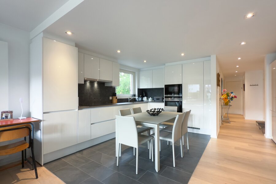 La cuisine entièrement équipée se trouve à proximité du séjour et est conçue pour la vie quotidienne comme pour les moments culinaires, avec un agencement pratique facilitant la préparation des repas et le divertissement.
