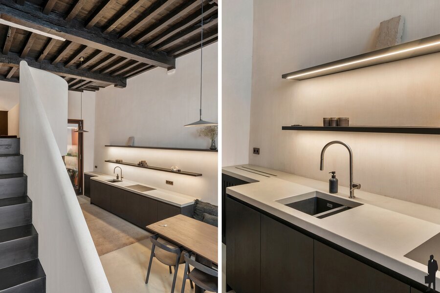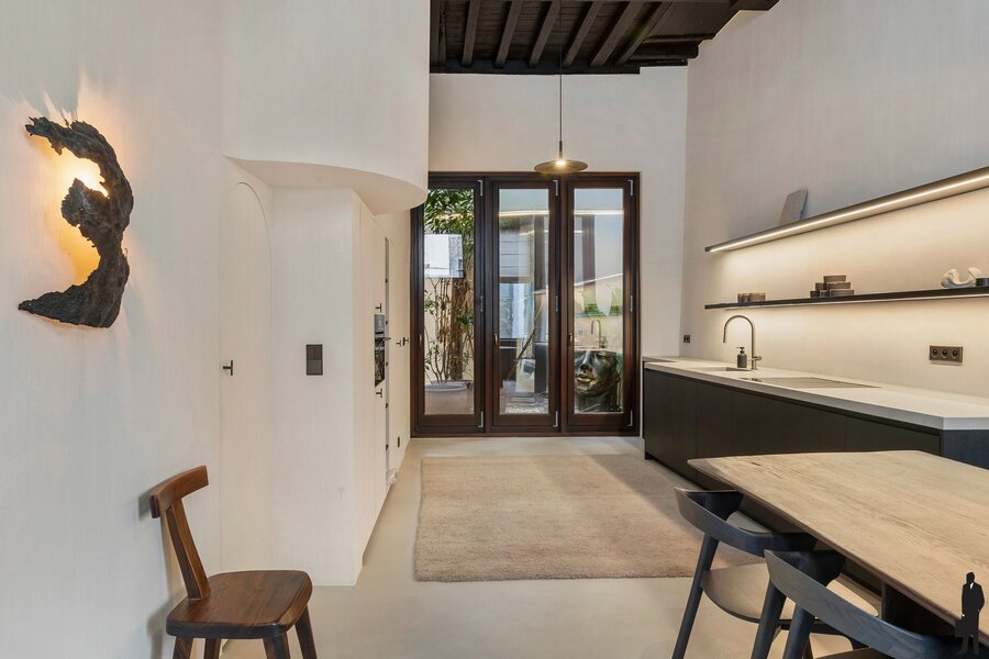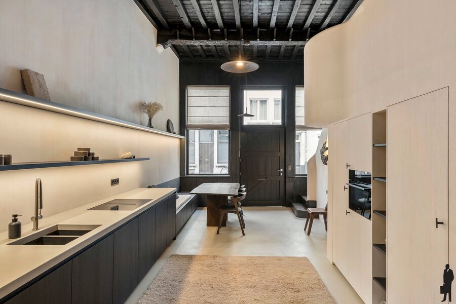 In 2024 werd de woning volledig en met grote zorg gerenoveerd in samenwerking met Maison Osaïn. Het resultaat is een perfecte symbiose van authenticiteit en hedendaags comfort. Het karakter van het 19de-eeuwse pand werd zorgvuldig hersteld, terwijl de woning tegelijk volledig werd klaargestoomd voor de toekomst: EPC A dankzij doorgedreven isolatie in alle vloeren, ventilatiesysteem D, energiezuinige verwarming en koeling, en zelfs een kelder die werd afgewerkt met kurkvloer en ventilatie.