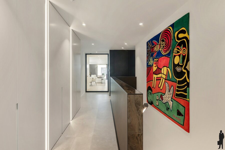 Via de centrale inkomhal met lift bereik je rechtstreeks het appartement.