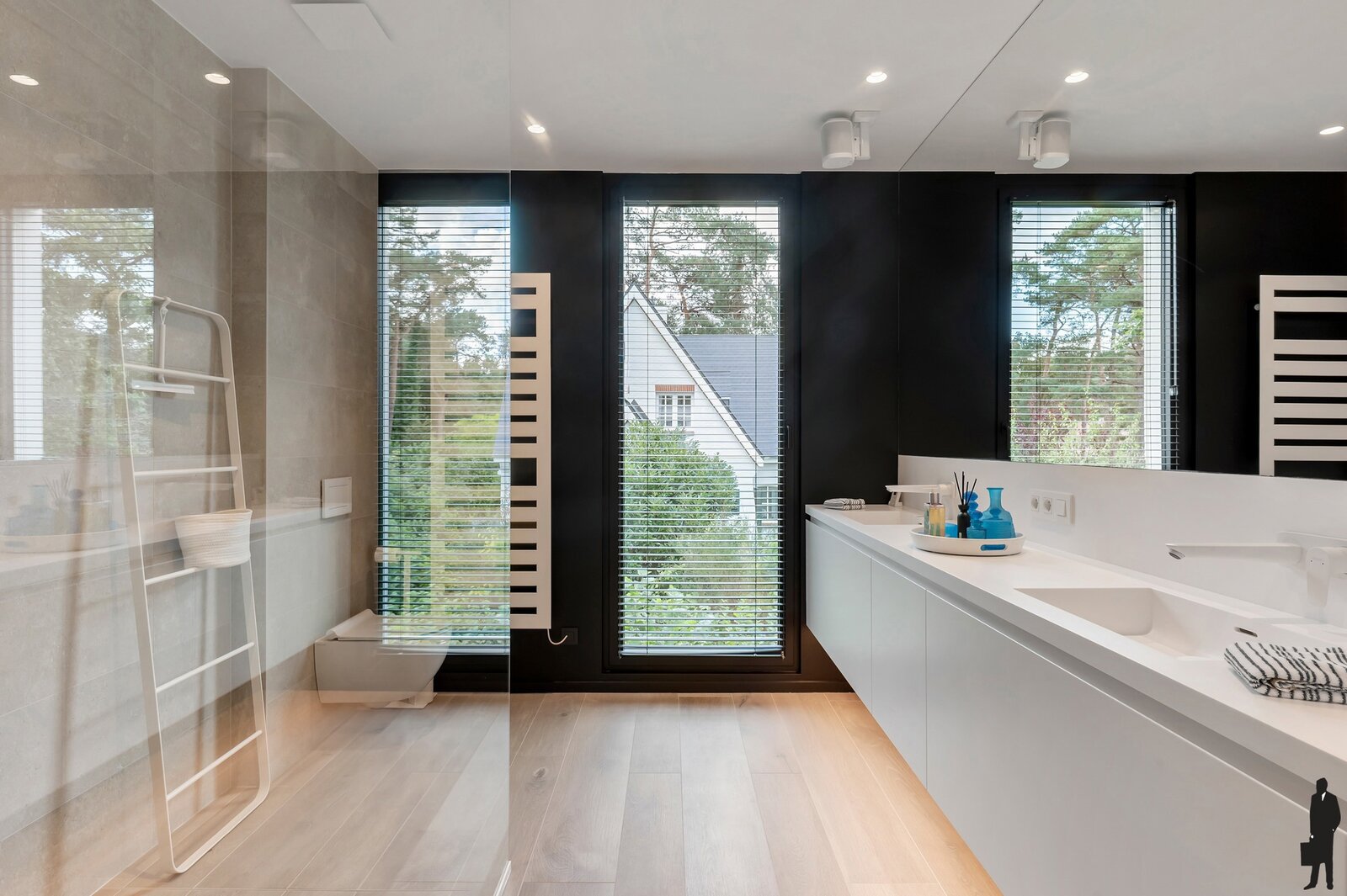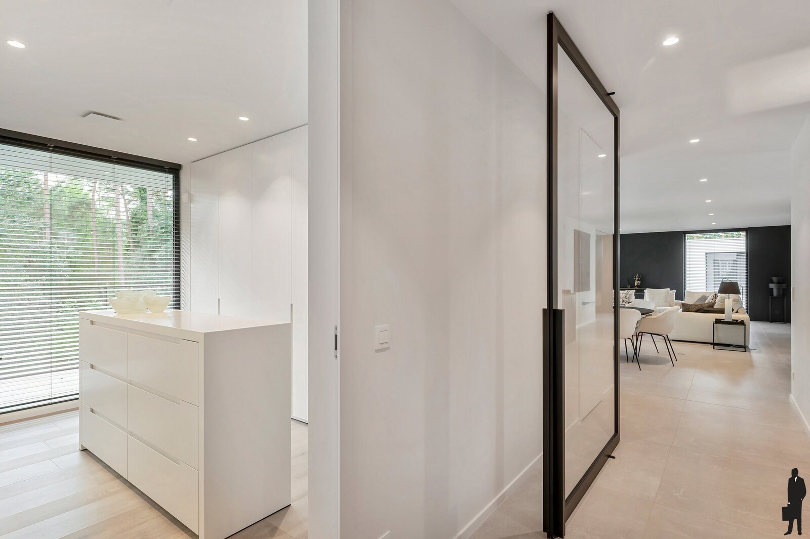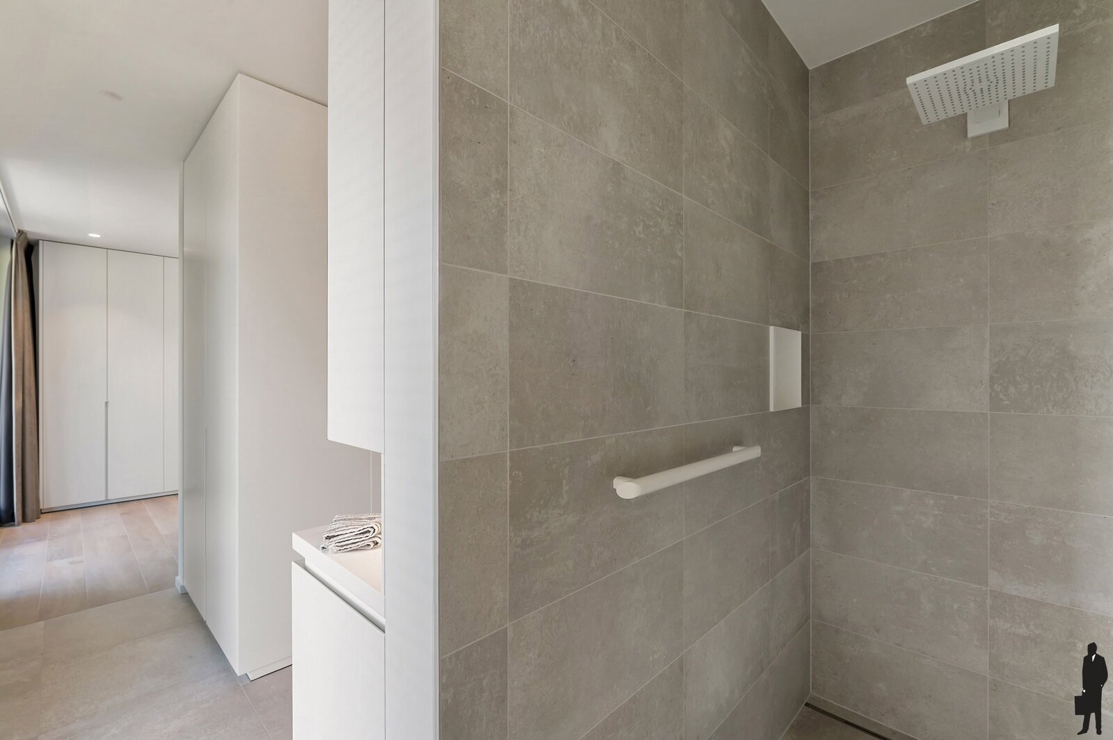 Op het gelijkvloers vind je een dubbele garage met directe toegang tot de centrale inkomhal en lift die rechtstreeks naar het appartement leidt. Voorzien van vloerverwarming en laadcontact voor een elektrische wagen. Ultiem comfort gegarandeerd.