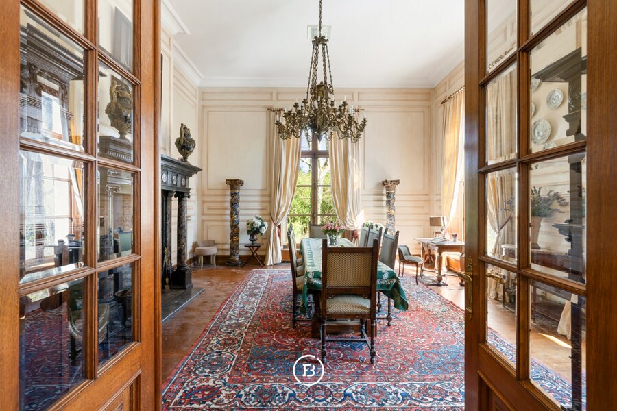 Le château, construit en 1885 dans un style éclectique avec des influences marquées de néo-Renaissance, a été rénové en profondeur à 1985. Entièrement sous-solé et offrant env. 1 164 m² habitables, il allie volumes généreux et confort. Ses éléments authentiques, ses espaces impressionnants et son élégance intemporelle offrent une expérience résidentielle unique, empreinte d’histoire et de raffinement.