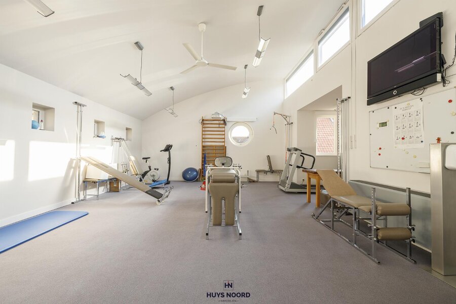La partie professionnelle est entièrement aménagée et prête à lemploi, avec une entrée séparée et salle dattente, un bureau, un local technique et trois salles de consultation. En outre, une cave particulièrement spacieuse avec lumière du jour est actuellement utilisée comme quatrième espace de consultation, ainsi quun étage supérieur aménagé en cinquième salle de pratique. Enfin, des toilettes et une douche supplémentaires sont également disponibles pour plus de confort.