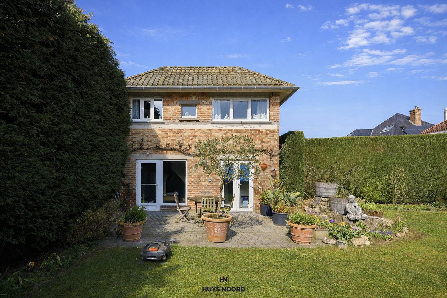 À larrière se trouve un magnifique jardin ensoleillé où calme et intimité sont au rendez-vous. Un atout supplémentaire est la présence dune charmante dépendance polyvalente avec douche idéale comme pool house, espace de loisirs ou mancave.