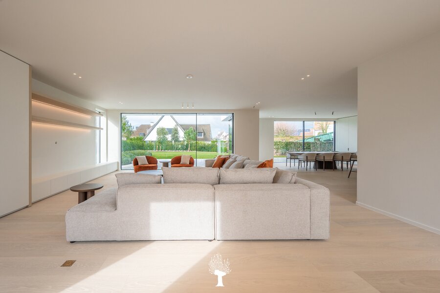 Villa de nouvelle construction avec vue dégagée sur les polders tranquillement située au bord du Zoute. Finitions haut de gamme. Composition: hall d'entrée avec vestaire et wc. Grand séjour / salle à manger avec feu ouvert au gaz et de grandes baies vitrées avec accès vers la terrasse et le jardin.Coin Bureau. Cuisine entièrement équipée. Arrière-cuisine/buanderie. A l'étage: chambre principale avec accès vers la terrasse, avec dressing et salle de bains attenante (bain, douche, double lavabo, wc). 2ème et 3ème chambre à coucher avec chacune son dressing et sa salle de douche pratique. Wc sur le hall de nuit. Au second étage: grenier amnénagable. Alarme, airco, ... Garage pour deux voitures et plusieurs emplacements de voiture. Visites volontiers après rendez-vous en nos bureaux. A saisir!
