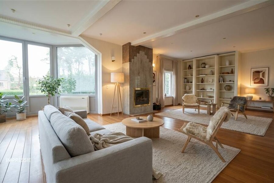In een doodlopende straat bevindt zich deze goed onderhouden en tijdloze villa, omgeven door een uitgestrekte parktuin van ongeveer 41 are. De woning combineert een warme sfeer met royale leefruimtes en een mooi groen zicht. Zowel binnen als buiten geniet je hier van volledige privacy, rust en een hoogwaardige afwerking.