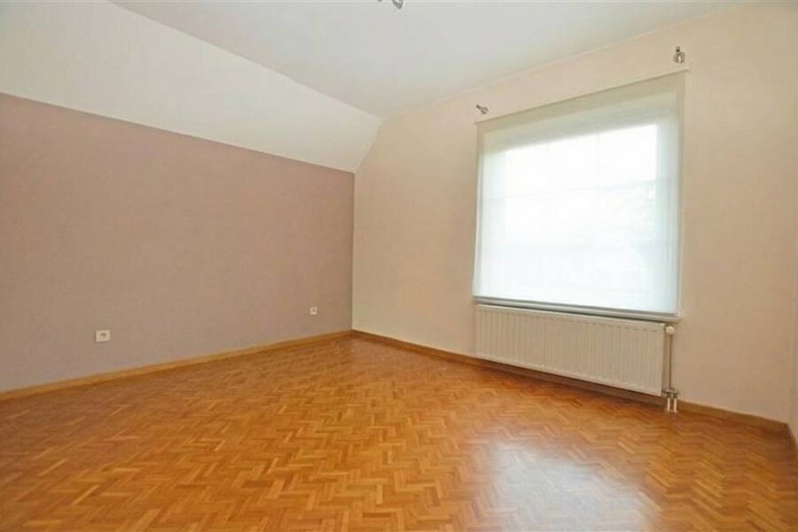 Op de verdieping leidt de overloop naar het mastergedeelte, uitgerust met een dressing en een eigen badkamer. Daarnaast zijn er twee ruime slaapkamers met inbouwkasten, een aparte douchekamer en een derde, kleinere slaapkamer, die directe toegang biedt tot de zolder. Deze zolder is volledig geïsoleerd en creëert bijkomende mogelijkheden voor extra ruimte of berging.