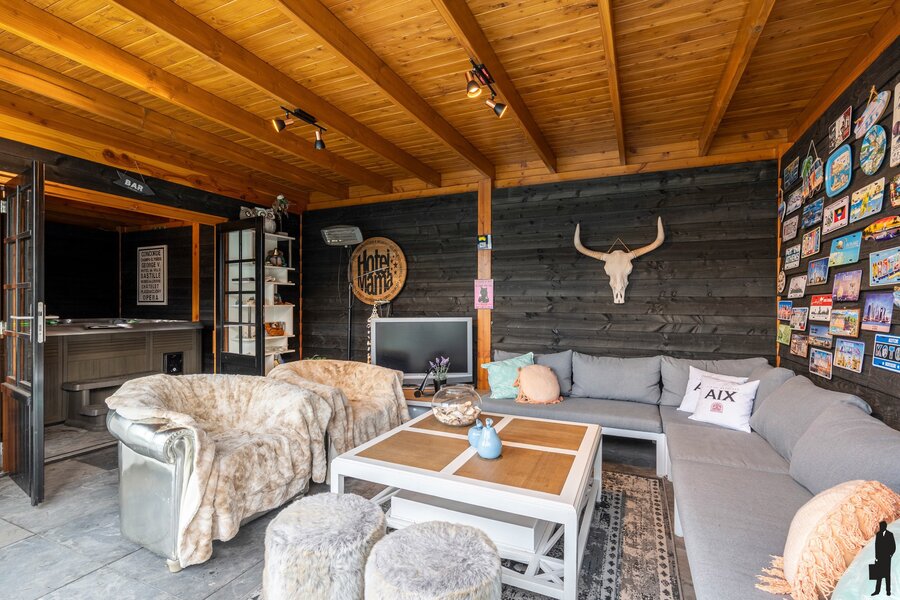 De zuid gerichte tuin is fraai aangelegd en voorzien van meerdere terrassen. U geniet hier van een verwarmd Starline zwembad met buitendouche en een aparte relaxruimte van ca. 32 m² met jacuzzi en glazen schuifpanelen – ideaal om het hele jaar door te ontspannen. Op het perceel is er parkeergelegenheid voor zes wagens en een laadpaal aanwezig.
