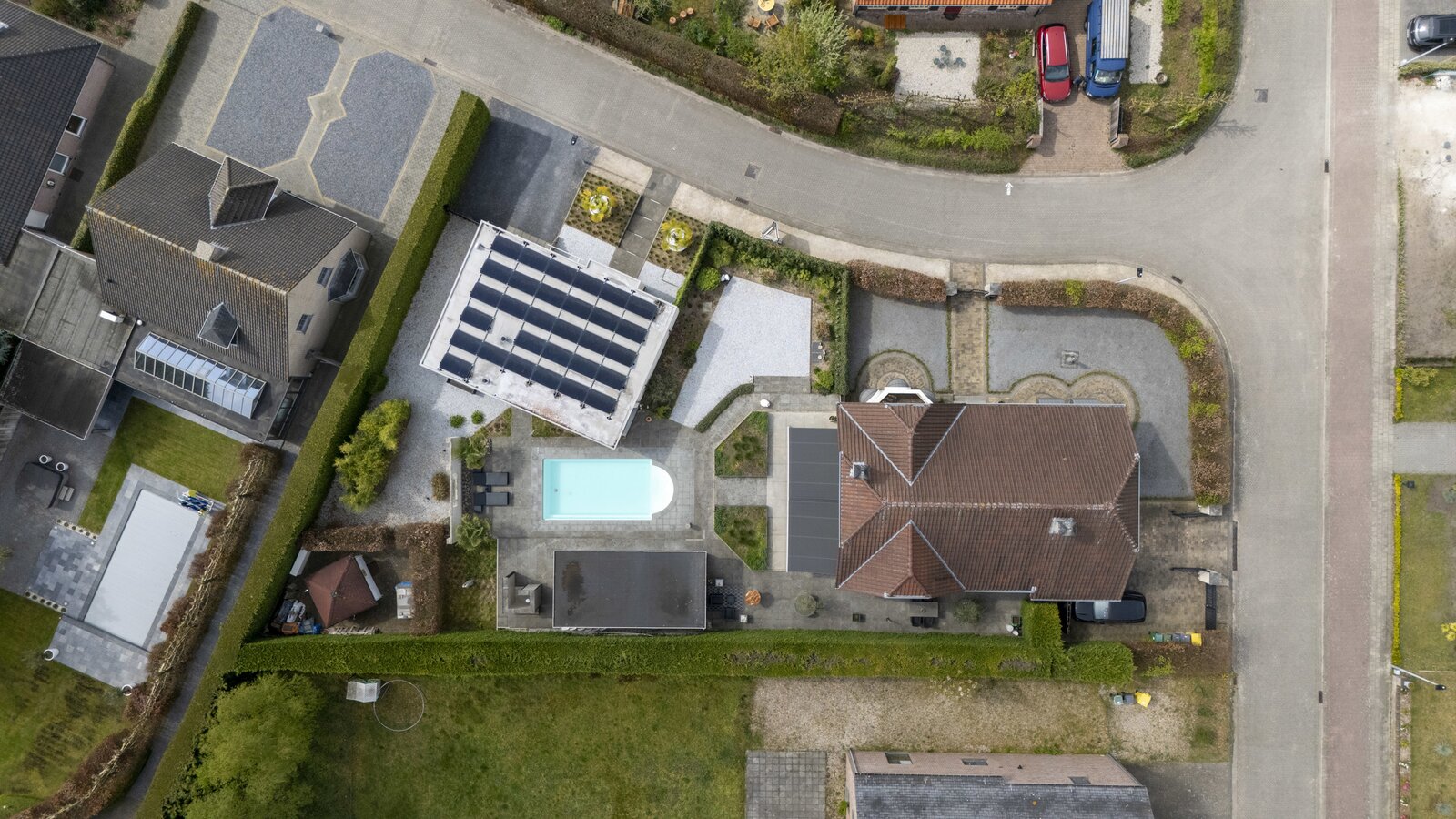 Op een rustige ligging nabij de Nederlandse grens, op een ruim hoekperceel van maar liefst 1.353 m², bevindt zich deze prachtige en volledig instapklare villa. Deze eigendom combineert luxe, comfort en veelzijdigheid, met onder meer een verwarmd zwembad, jacuzzi en een hoogwaardig afgewerkt bijgebouw van ca. 120 m² – ideaal als kantoor, gastenverblijf of B&B. Deze eigendom is volledig omsloten door groene hagen en biedt een maximum aan comfort en privacy.