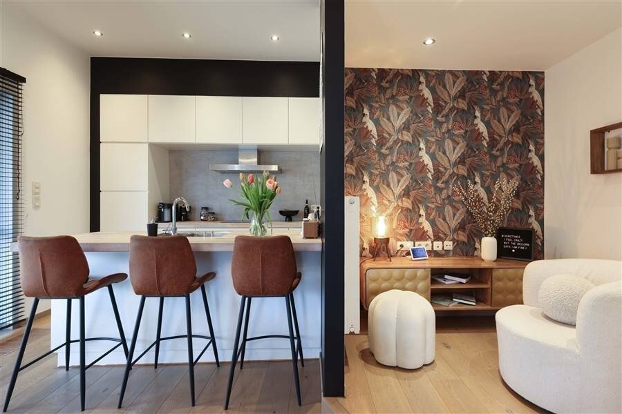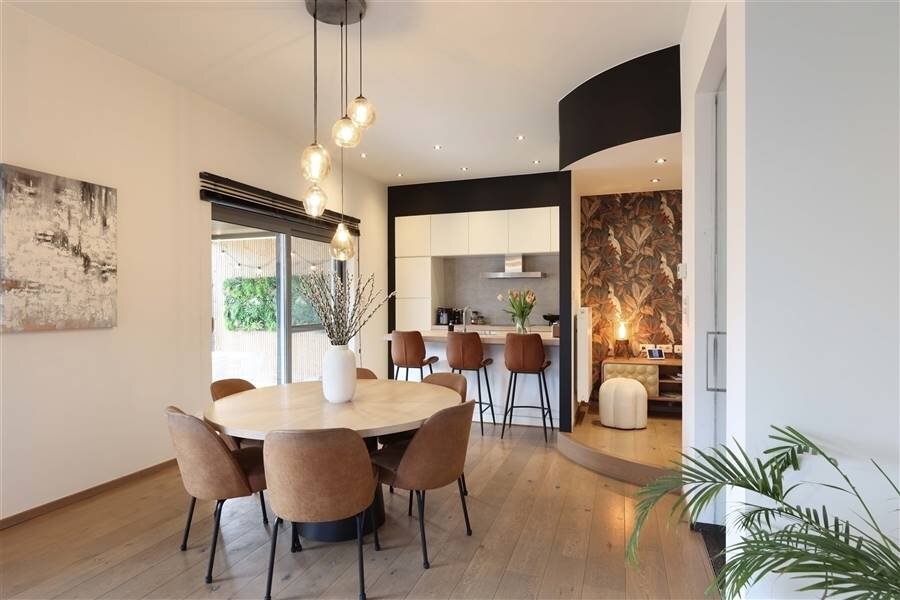 + Stijlvolle en lichtrijke leefruimte met open keuken met een knappe parketvloer én directe connectie naar terras én tuin
