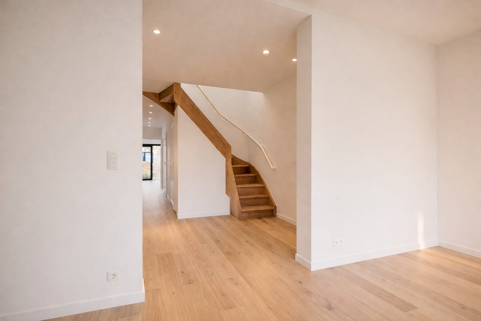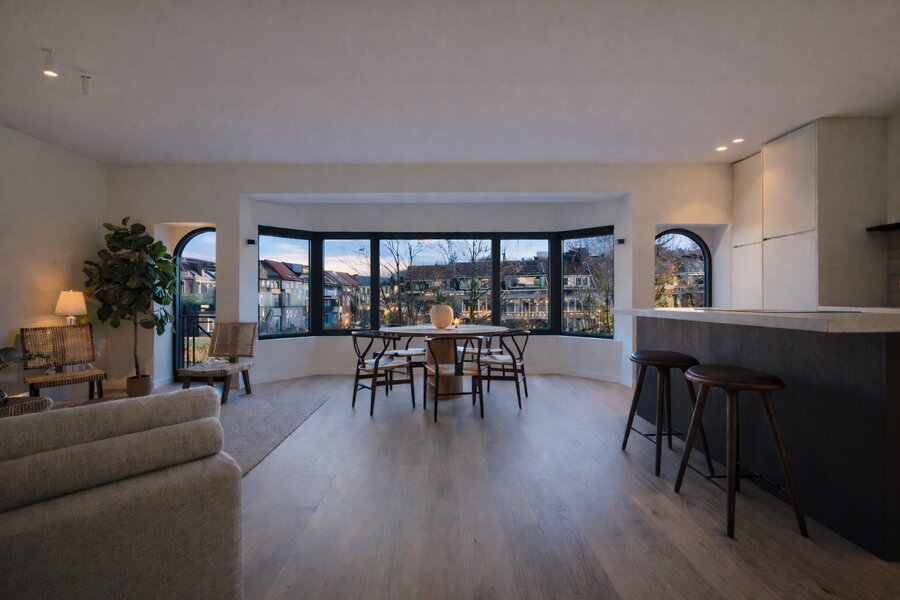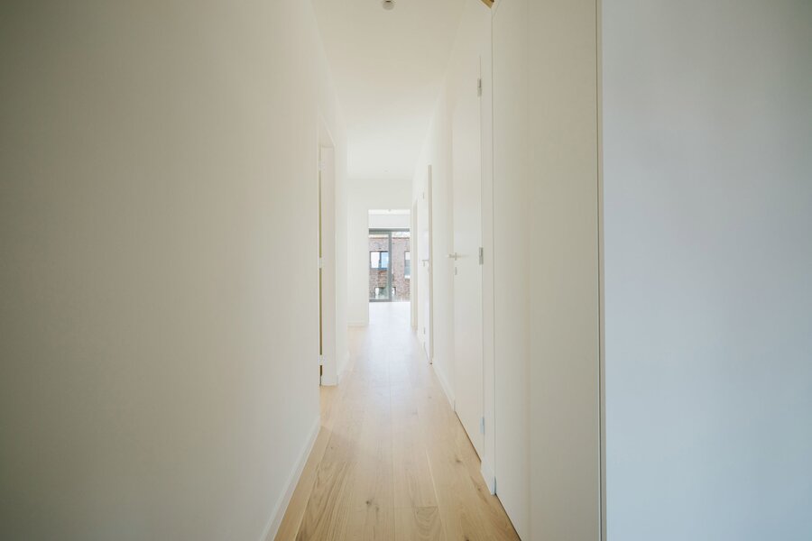 De penthouse is afgewerkt met kwalitatieve parketvloer, blokdeuren en luxueuze materialen die warmte en klasse uitstralen.