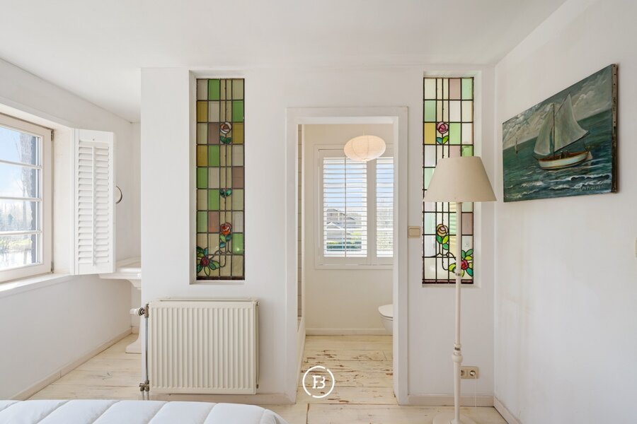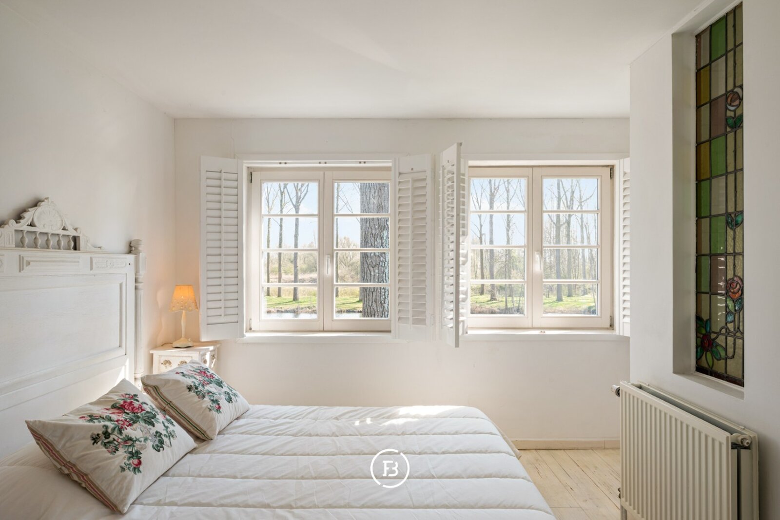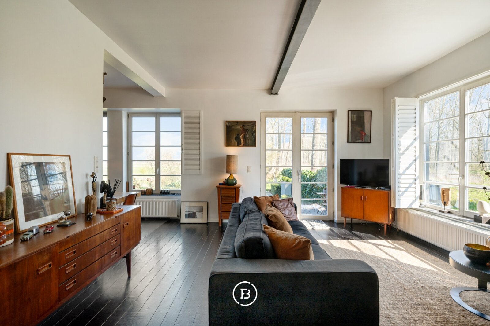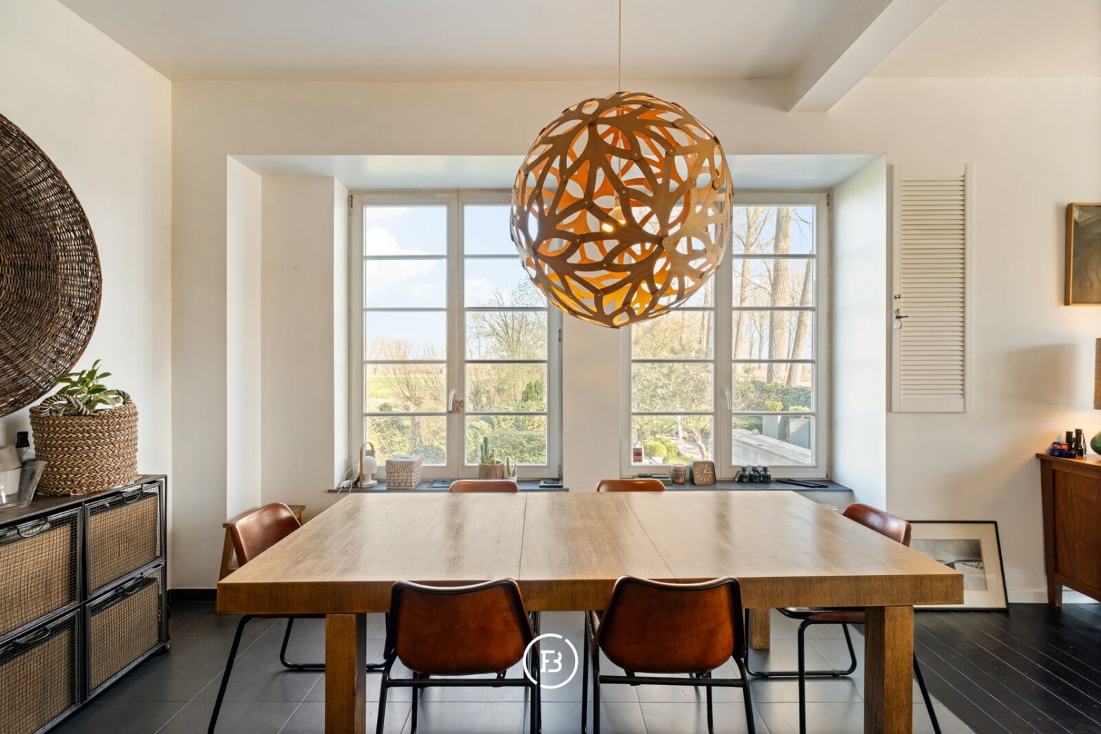 Au cœur des polders, le long du canal de Damme, se trouve cette propriété double de caractère. Ce monument classé est entièrement entouré de verdure et bénéficie d’un environnement calme et dégagé.