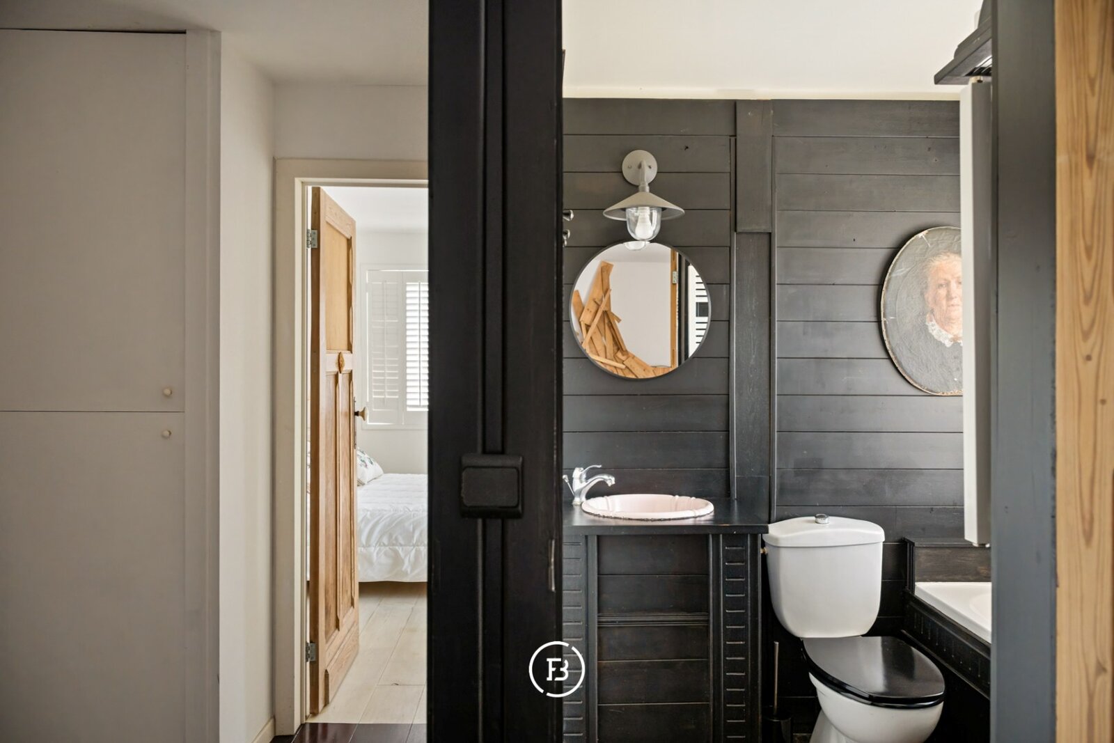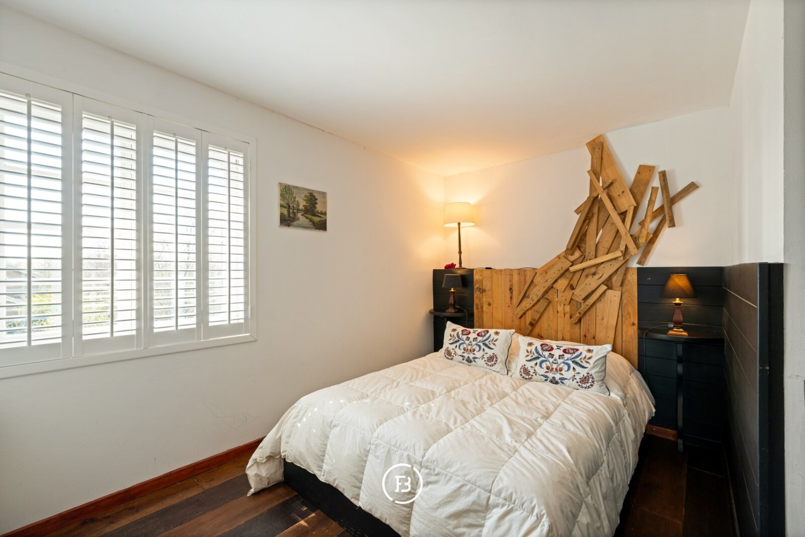 La propriété a fait l’objet d’une rénovation complète en 2004, suivie d’une rénovation de la toiture en 2018. Elle comprend aujourd’hui deux espaces de vie, deux cuisines et six chambres, chacune avec sa salle de bains attenante. Un local à vélos ainsi qu’un double garage complètent l’ensemble.