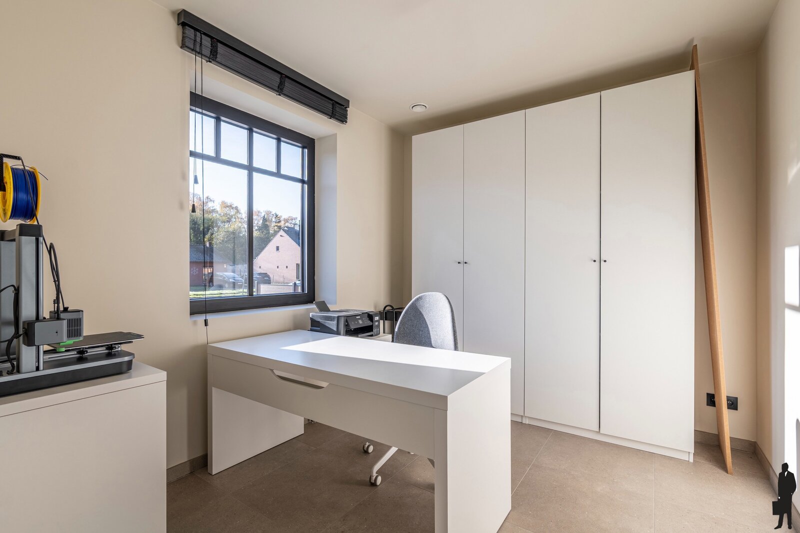 Hoogwaardig afgewerkte, nieuwbouwwoning in tijdloze pastorijstijl met o.a. 3 à 4 slaapkamers, 2 badkamers, bureauruimte, grote zolderverdieping en bijkomend afzonderlijke atelier- hobby- of garagegruimte achteraan. Het geheel ligt op een perceel van ca. 868m², uitstekend gelegen - centraal, doch rustig - nabij de Wezelse bossen vlakbij het centrum van Mol en Lommel. De woning van bouwjaar 2024 is uiterst energiezuinig (geothermische warmtepomp, zonnepanelen, ventilatie type D, etc.) en werd doorgedreven kwalitatief afgewerkt en ingericht voor eigen bewoning. De woning is overal voorzien van vloerverwarming en vloerkoeling (incl. bovenslaapkamers, excl. zolder). Nabij natuur- en recreatiegebied De Keiheuvel en De Most, scholen, dorpskern Wezel, stadskern Mol en bovendien op wandel- en/of fietafstand van alle voorzieningen (Alma, Spar, etc.) en sportfaciliteiten (padel, tennis, voetbal). EPC-score van 12kWh/m²/jaar (energielabel A). De woning is gelegen nabij Postel en de Nederlandse grens.