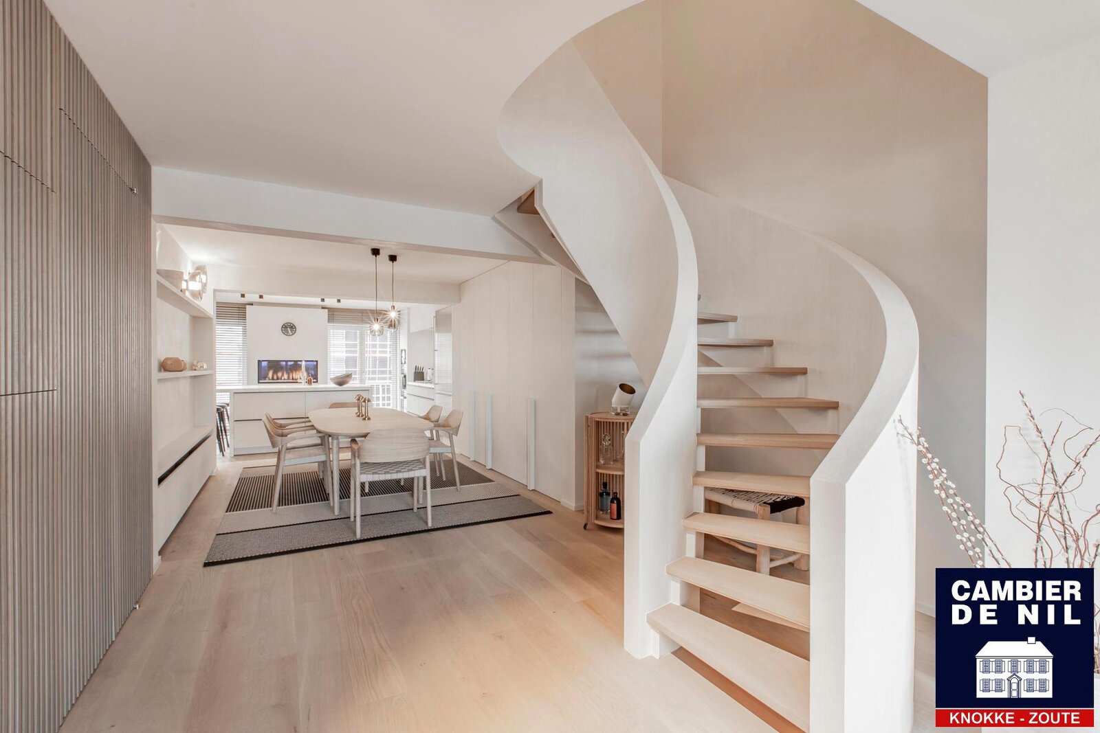 Indeling als volgt: zeer ruime leefruimte met zonneterras aan de voor- en achterzijde. Apart toilet. Volledig uitgeruste en gezellige leefkeuken met luxe apparatuur; Amerikaanse koelkast, stoomoven, oven, Microgolfoven, grote wijnkoelkast... (merken; Miele & Gaggenau). Grote eethoek. Indrukwekkende wenteltrap die u naar het verdiep brengt met volgende indeling; 3 ruime slaapkamers met ingemaakte kasten en open zichten. 2 complete ruime badkamers voorzien van alle benodigdheden.