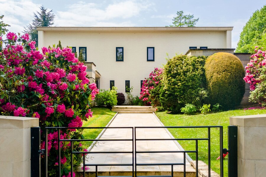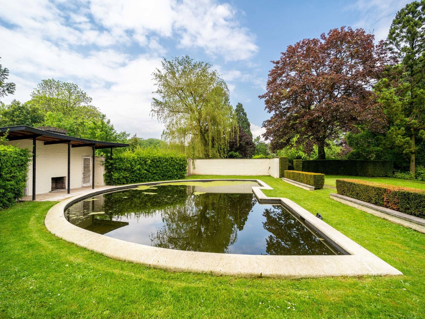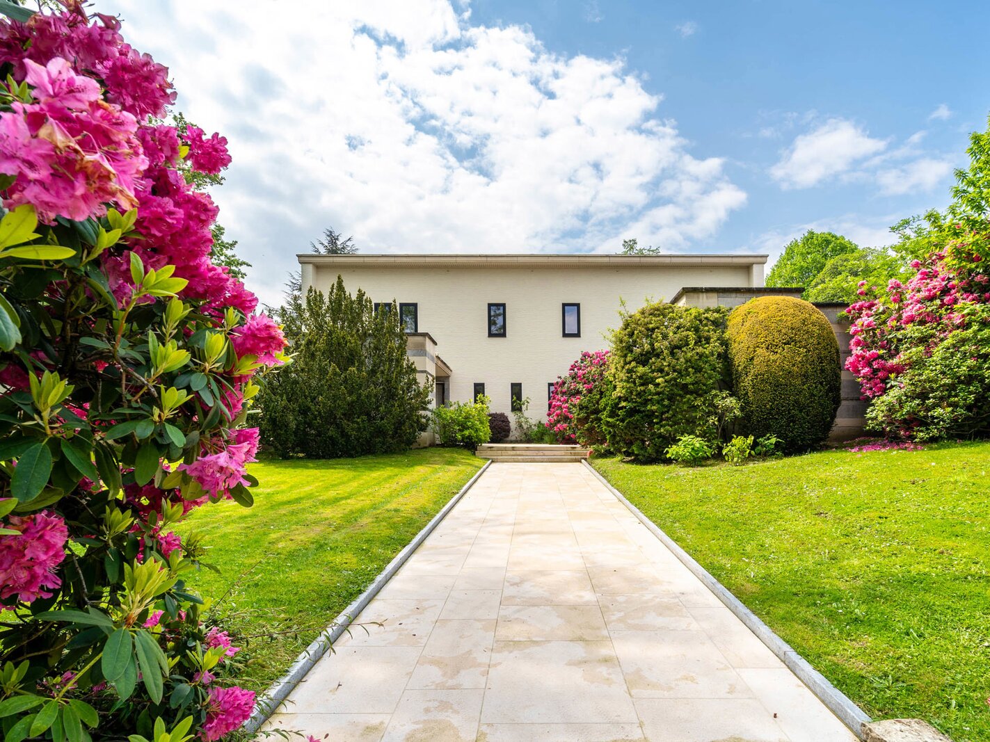 In een van de meest gewilde wijken van Brussel, prachtige villa met bijgebouwen, ontworpen in 1955 door architect Jean Dumont en het bedrijf Louis de Waele, met een bruto vloeroppervlak van circa 615 m² op een zuidwestgericht terrein van 45 are zonder inkijk en met een zwembad.