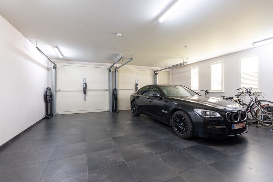 Verder vindt u op het gelijkvloers nog een praktische berging met aansluitend de CV-ruimte en de ruime dubbele inpandige garage, voorzien van sectionaal poorten.