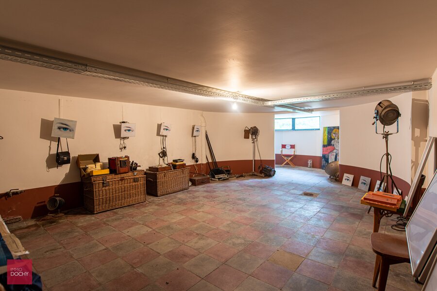 Bestaande uit inkomhal, living, eetplaats, bureel, indrukwekkende traphal, dagelijkse woonplaats, keuken, fumoir, 5 ruime slaapkamers en 2 badkamers. Volledig onderkelderd, 2 garages, zolderkamers en zuidgerichte ruime tuin.