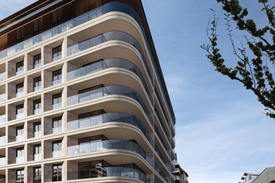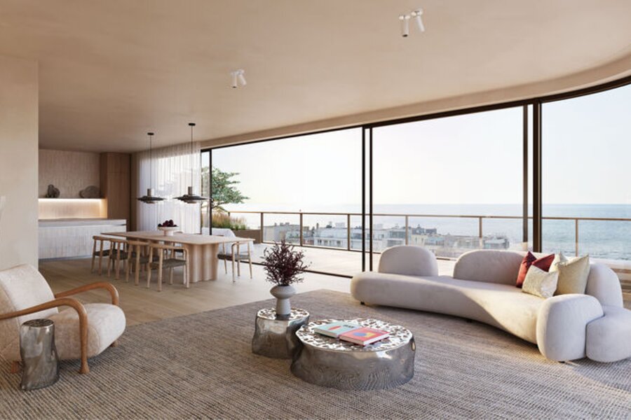 One Beach is verder een echte eyecatcher in het straatbeeld. Het gebouw met 122 appartementen, bevat golvende lijnen en unieke materialen die samensmelten tot een harmonieus plaatje.