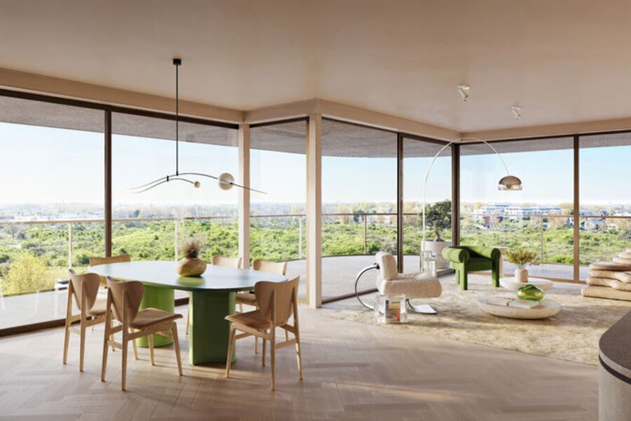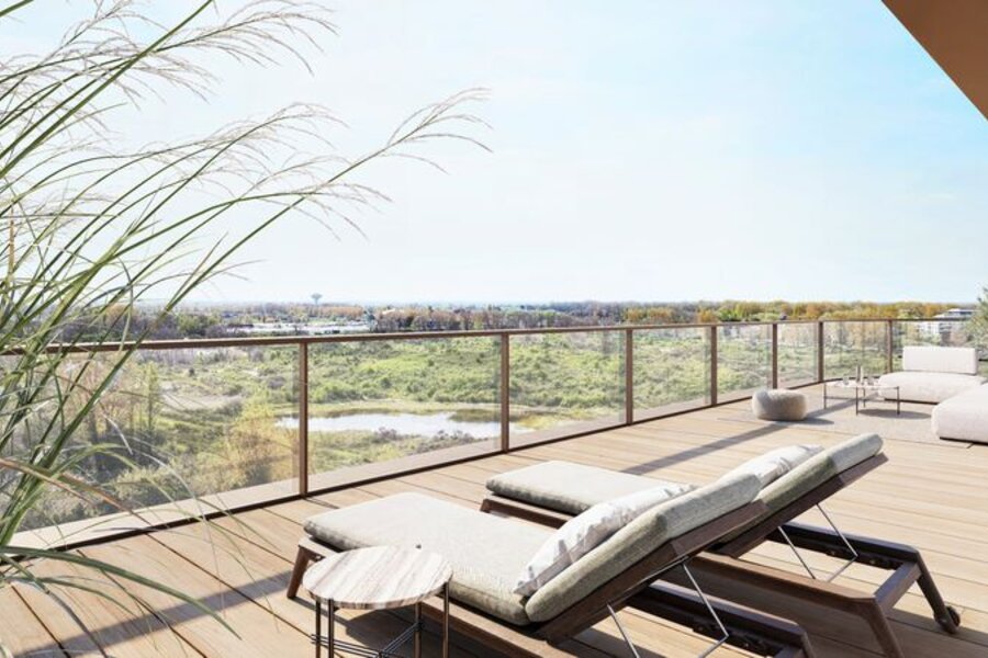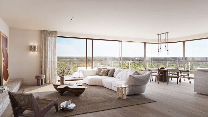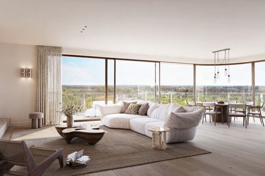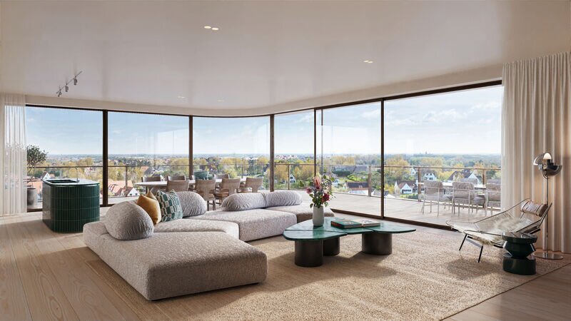 Royale terrassen en grote glaspartijen spelen een centrale rol. De leefruimtes worden optisch verlengd waardoor de grens tussen binnen en buiten vervaagt.