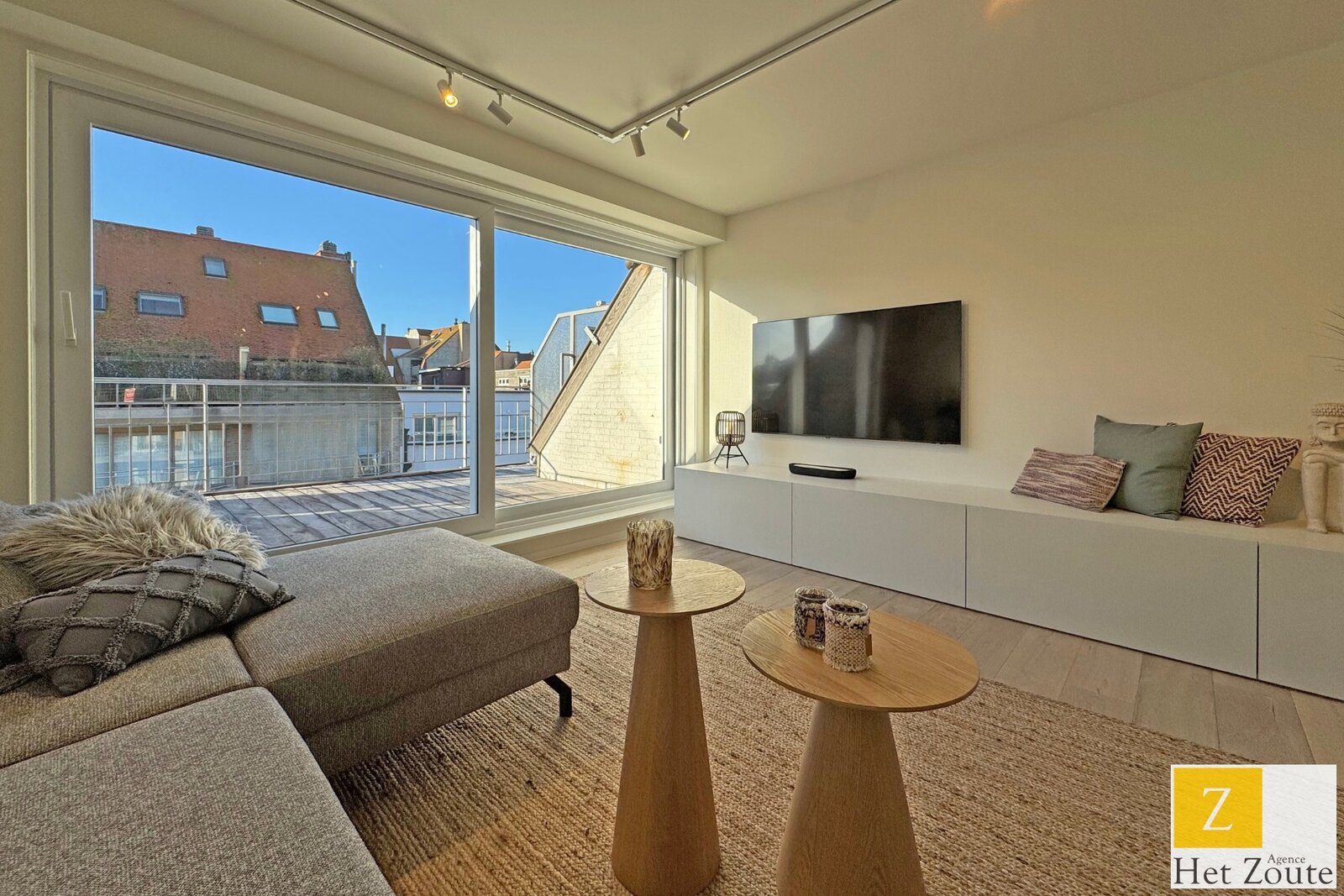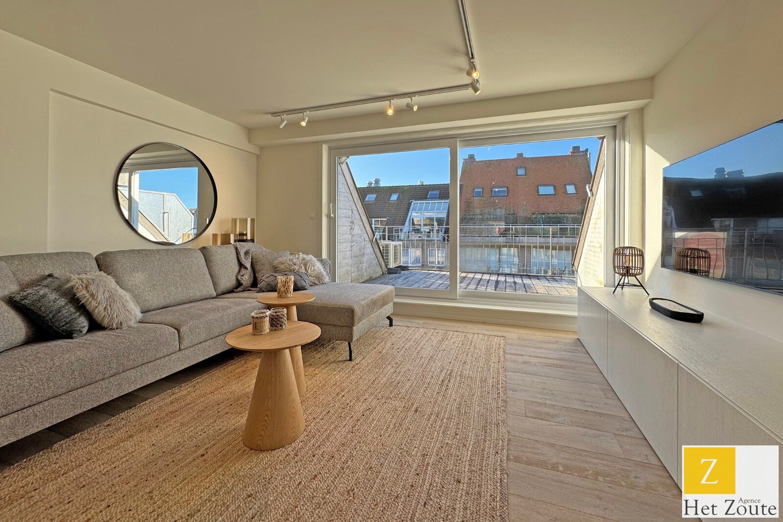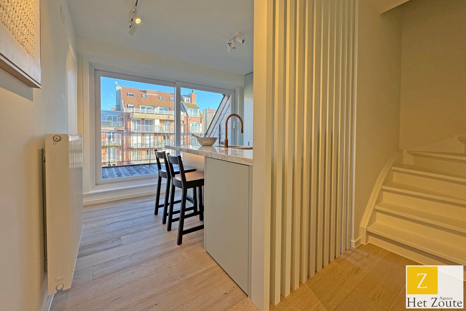 Dit volledig gerenoveerde duplex appartement biedt 3 slaapkamers en 2 ruime terrassen, gelegen in het centrum, tussen de Lippenslaan en het Rubensplein, op korte afstand van de Zeedijk.