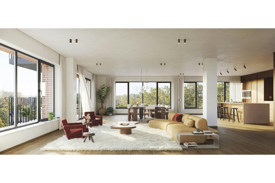 De architecten van Fast Forward Architects hebben het brutalisme van de oorspronkelijke kantoorgebouwen behouden, maar een moderne en verfijnde uitstraling toegevoegd. De appartementen zijn ruim en licht, met een open indeling.
