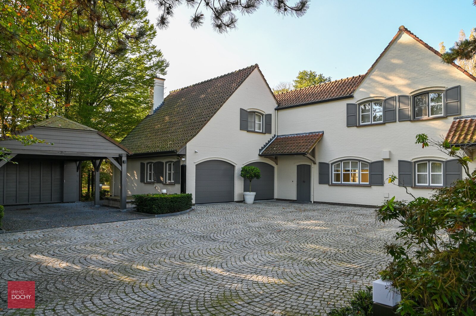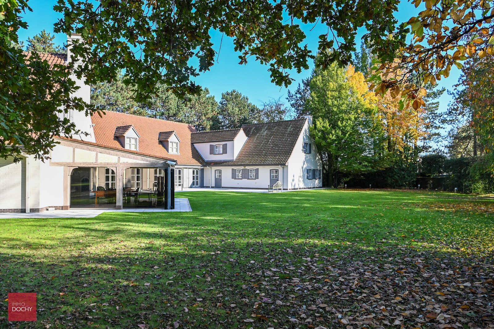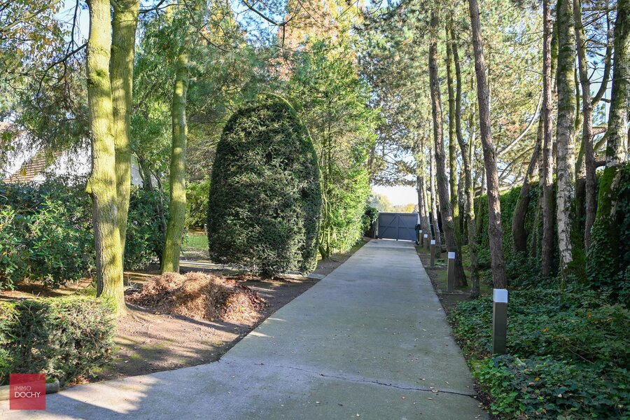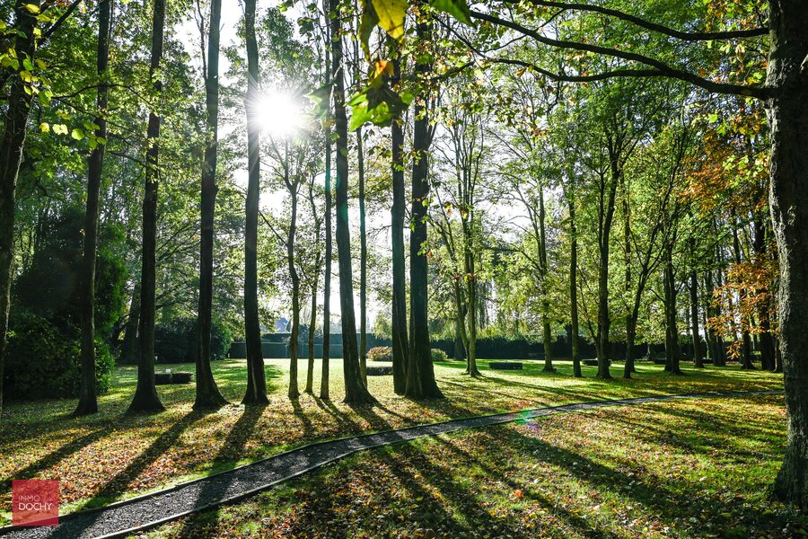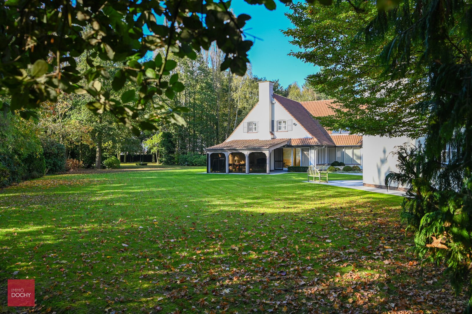 Prachtig domein met ruim landhuis bestaande uit inkomhal, living met open haard en eetplaats, ingerichte keuken met ontbijthoek, bijkeuken (wasplaats), tv-hoek, binnenzwembad, jaccuzzi, 2 burelen, 5 slaapkamers, 3 badkamers, kelders (wijn-en voorraadkelder), grote garage en carport. Conciërgerie (bijgebouw) met ruime living (mancave), bar, keuken, slaapkamers, berging en garage. Prachtige tuin met tuinberging, vijver en overdekt terras met barbecue. Domein van ca. 1,5ha.