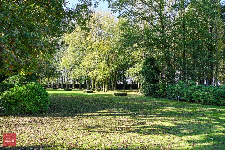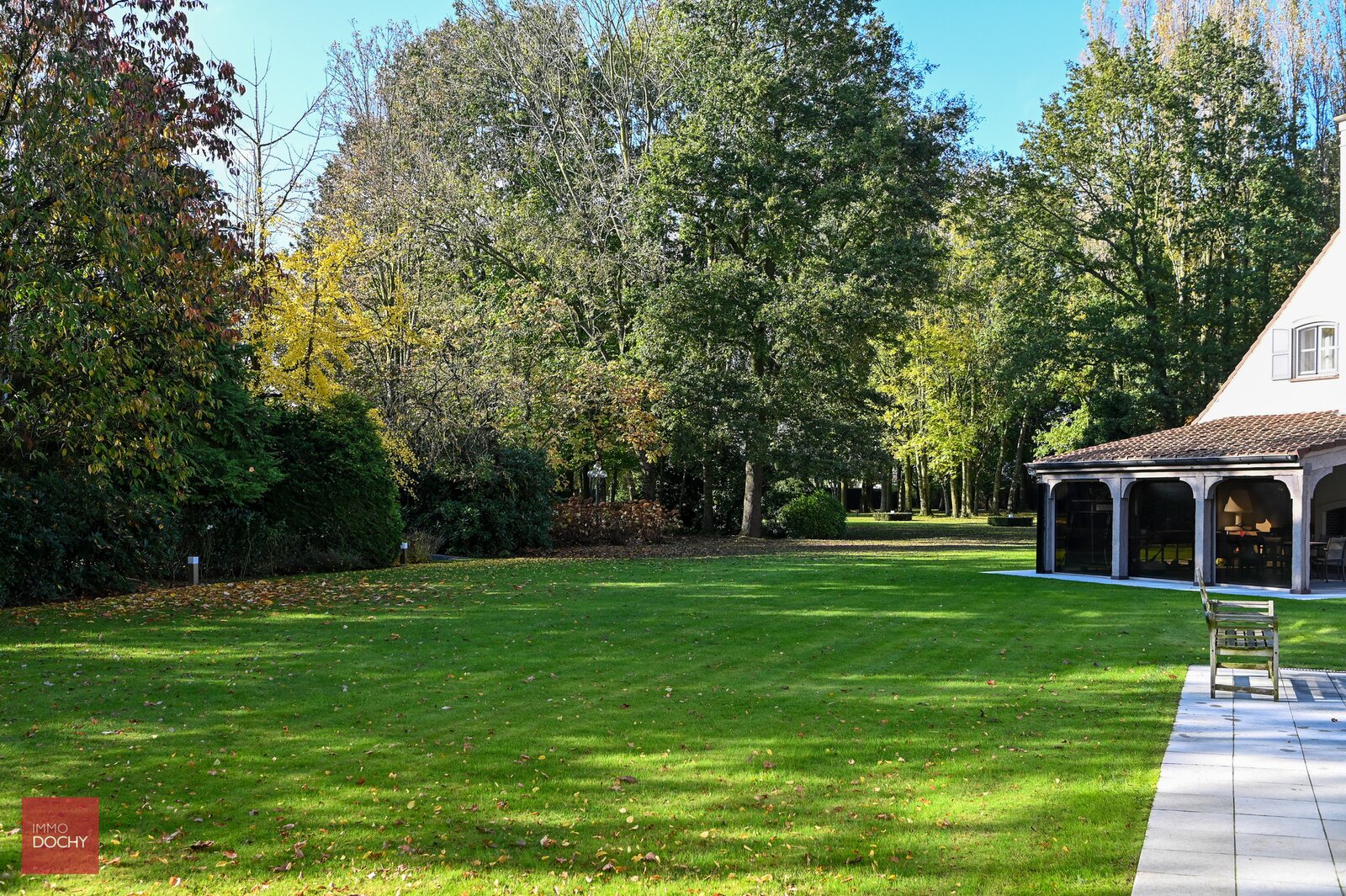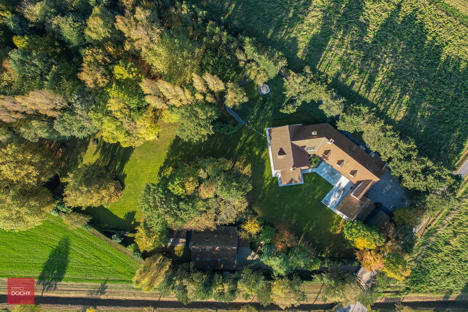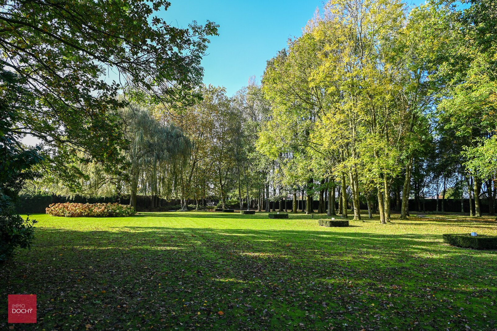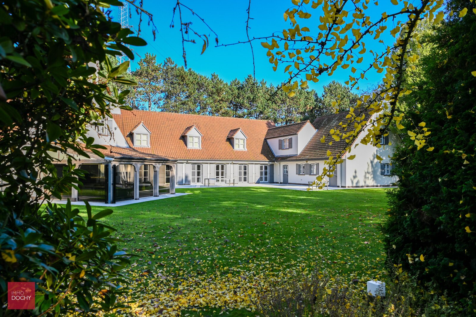 Prachtig domein met ruim landhuis bestaande uit inkomhal, living met open haard en eetplaats, ingerichte keuken met ontbijthoek, bijkeuken (wasplaats), tv-hoek, binnenzwembad, jaccuzzi, 2 burelen, 5 slaapkamers, 3 badkamers, kelders (wijn-en voorraadkelder), grote garage en carport. Conciërgerie (bijgebouw) met ruime living (mancave), bar, keuken, slaapkamers, berging en garage. Prachtige tuin met tuinberging, vijver en overdekt terras met barbecue. Domein van ca. 1,5ha.