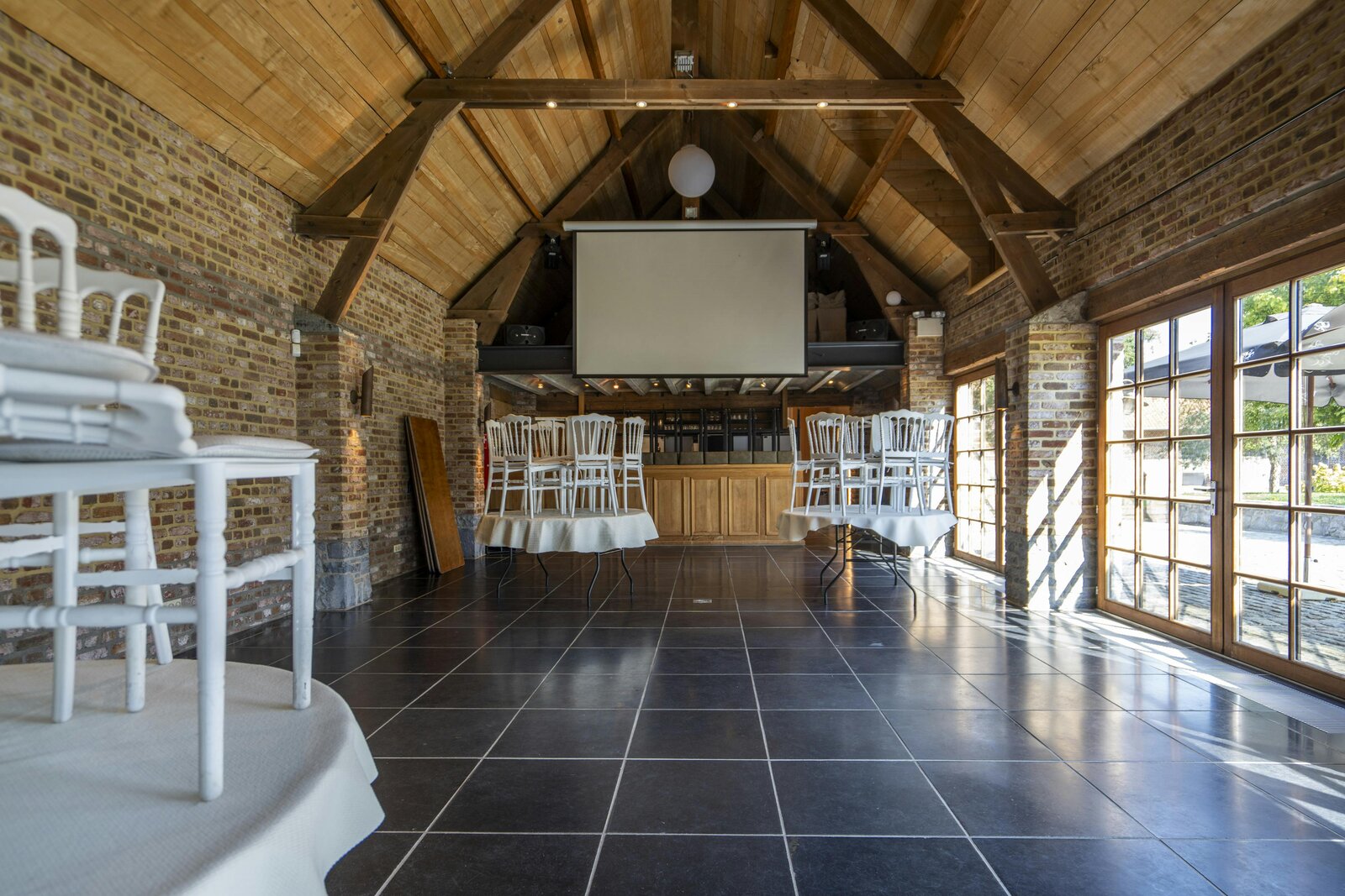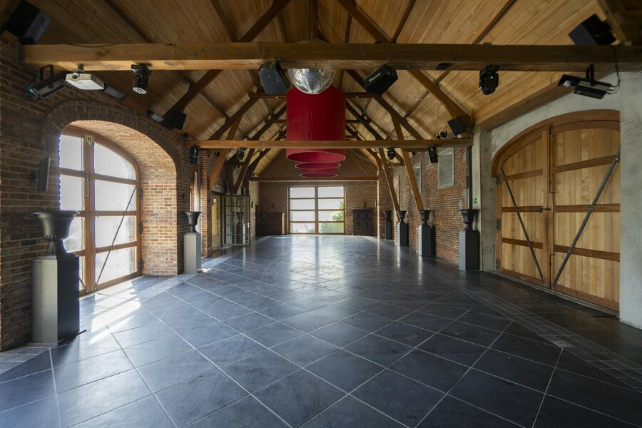- Een grote feestzaal met bijhorende keuken (externe catering) + ruime parking;