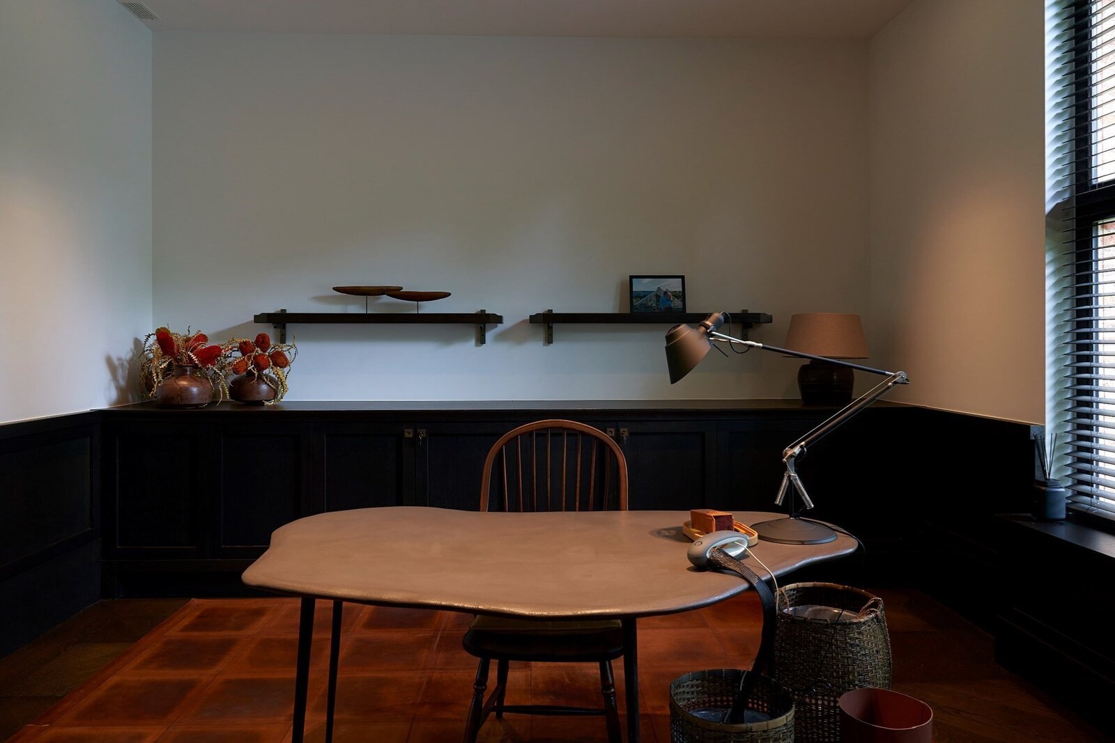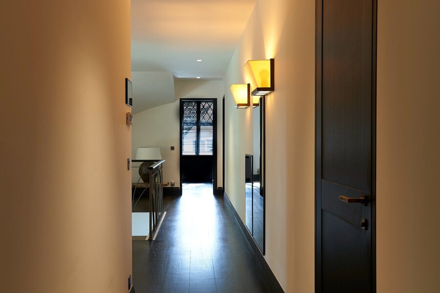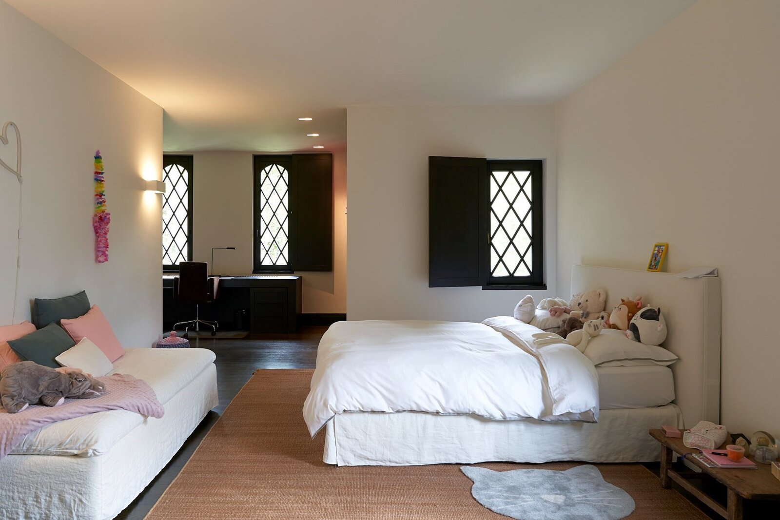 Hoogte plafond kamers gelijkvloers 310 cm.