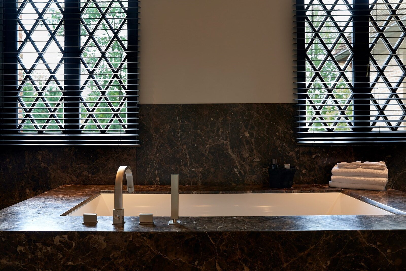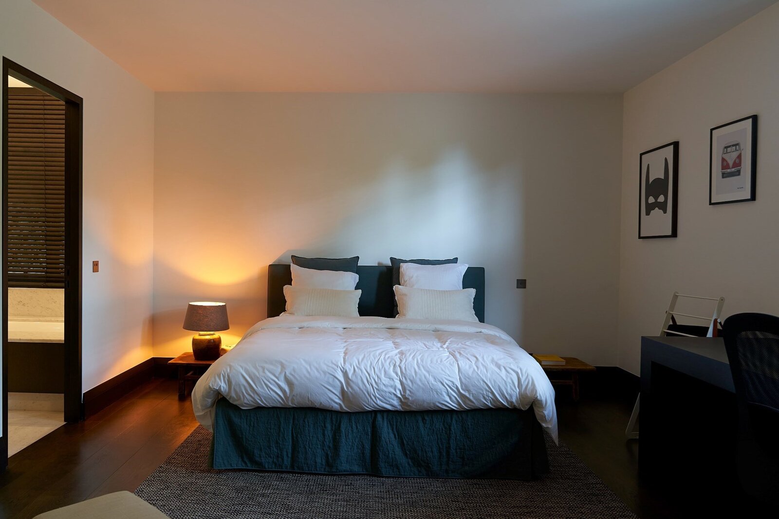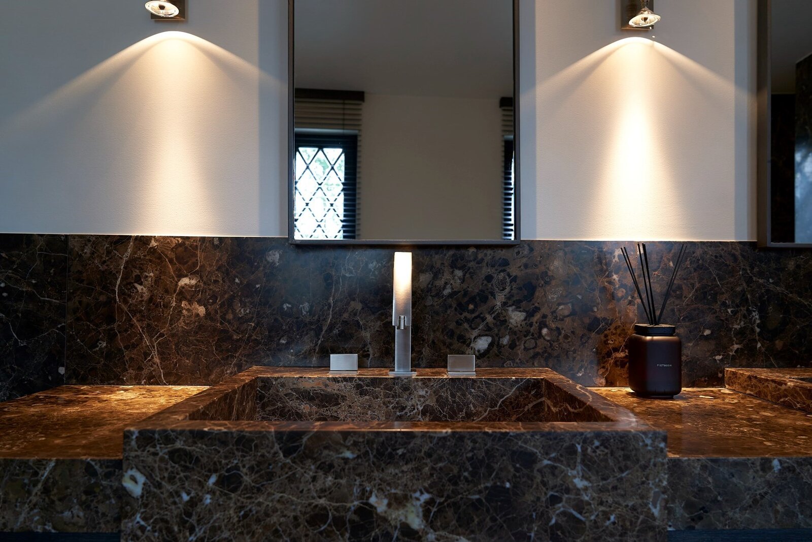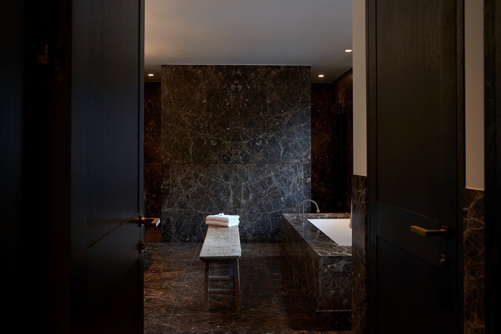 Indeling eerste verdieping: ruime overloop met eiken planken, lift en linnenkamer, supermooie ouderslaapkamer met erker, prachtige dressing met midden een ladenblok en rondom ingemaakte kasten op vast tapijt, zeer luxueuze badkamer volledig in Emperador marmer (dubbele wastafel met kastjes, apart toilet, groot ligbad en een dubbele inloopdouche. Tweede ruime slaapkamer (28,2 m²) met ingemaakte kasten en een tweede luxe marmeren (witte carrara) badkamer. Derde ruime slaapkamer (30 m²) met ingemaakte kasten, vierde ruime slaapkamer en een derde luxe marmeren (witte carrara) douchekamer, apart toilet, ruime wasplaats met ingemaakte kasten.