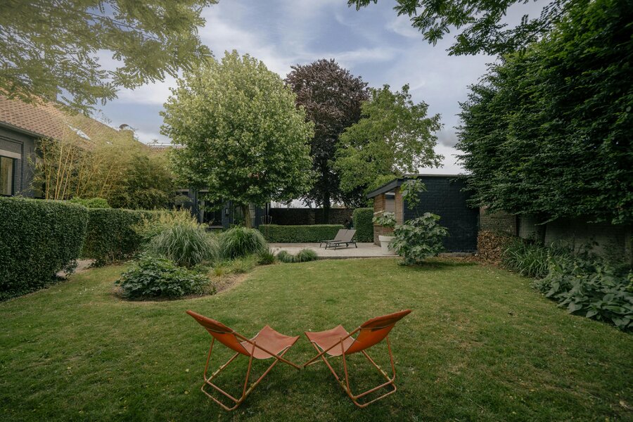 Ook buiten biedt deze eigendom heel wat voordelen. De verzorgde tuin op een perceel van 1031 m² garandeert rust en privacy. Parkeren kan op eigen terrein, in de garage of aan de laadpaal. De ligging is centraal, met winkels, openbaar vervoer en belangrijke invalswegen binnen handbereik.