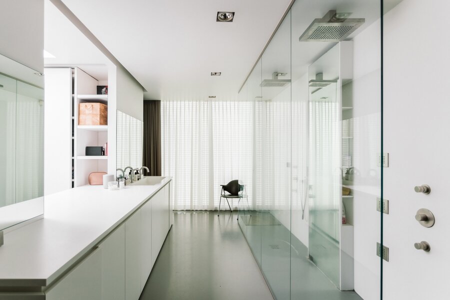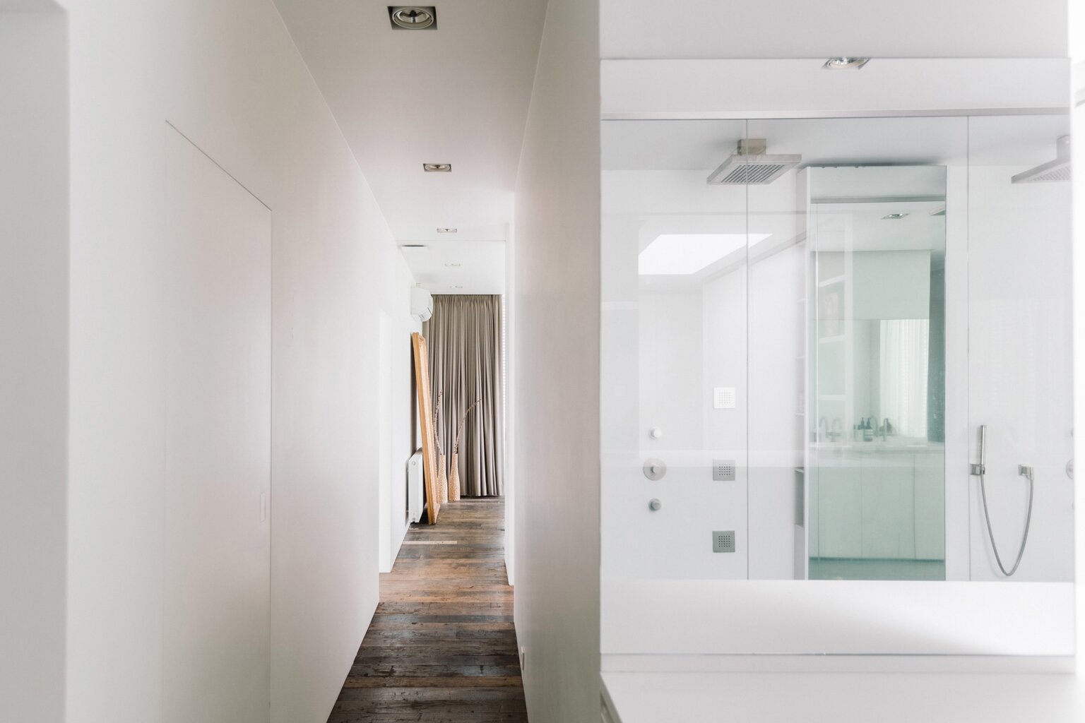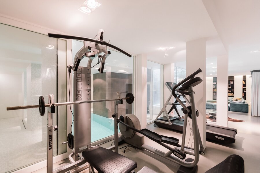 Met de lift beweeg je over de verdiepingen heen, bijvoorbeeld naar -1: binnenzwembad met mozaïek, spa & wellness, sauna, fitness, home cinema en pico bello uitgeruste muziekstudio. Alarm, 2 ondergrondse parkeerplaatsen, regenwaterputten, waterzuiveringsinstallatie, vloerverwarming (glvl)... Aan alles werd gedacht.