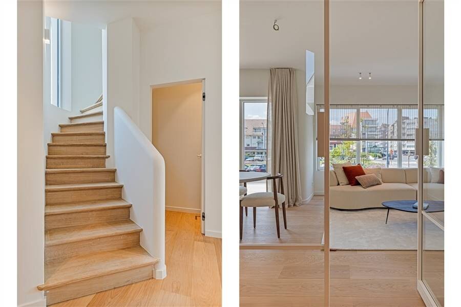 • Exclusieve keuken in lichte eik, voorzien van Miele-apparaten (oven, combi-oven, wijnkast, koelkast, vaatwasser, dampkap), Quooker-kraan en een koffiecorner. Directe toegang tot de achtertuin met terras.