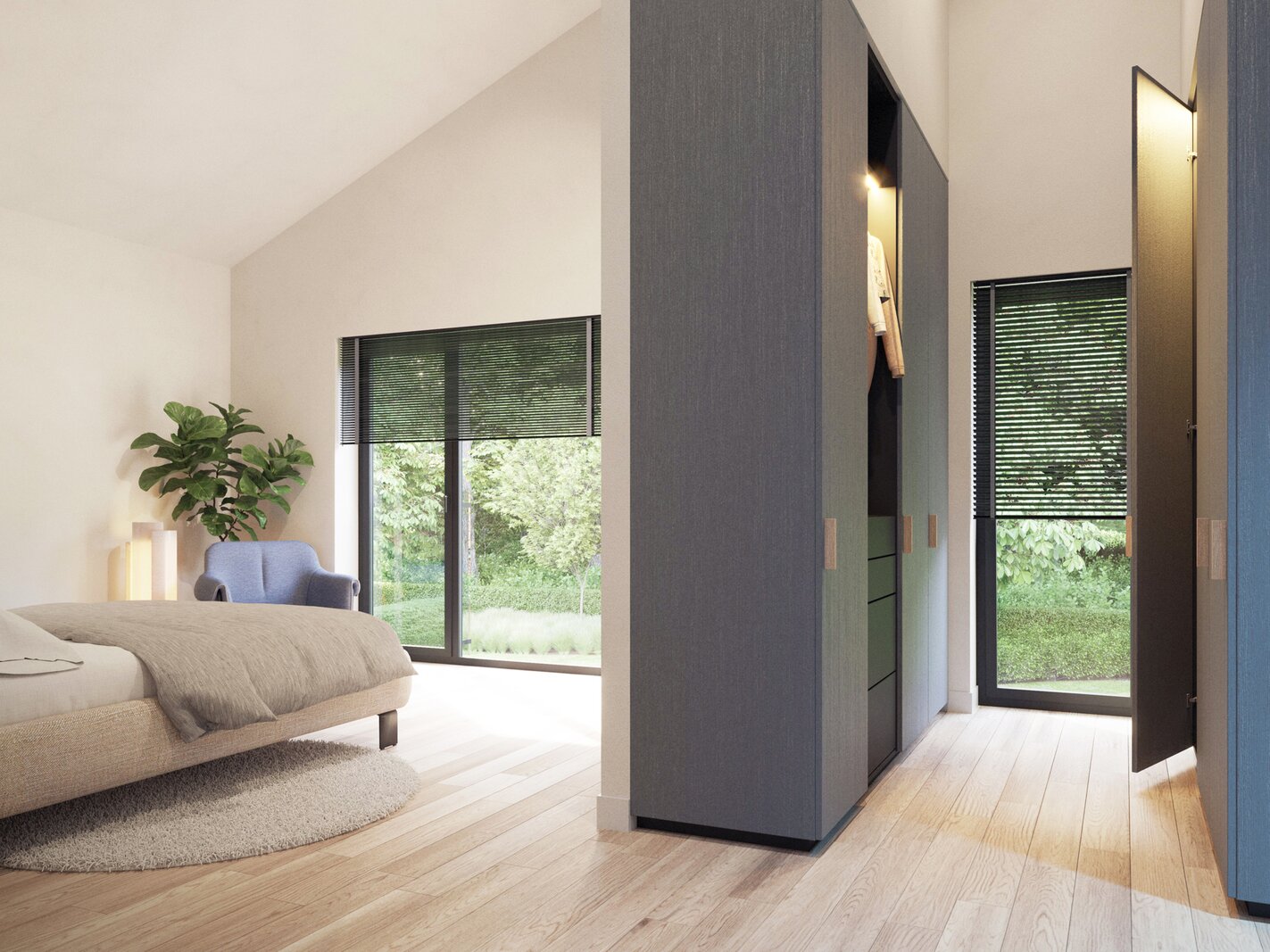 - Een hoofdslaapkamer met ensuite badkamer met dubbele lavabo, inloopdouche, ligbad en afzonderlijk toilet