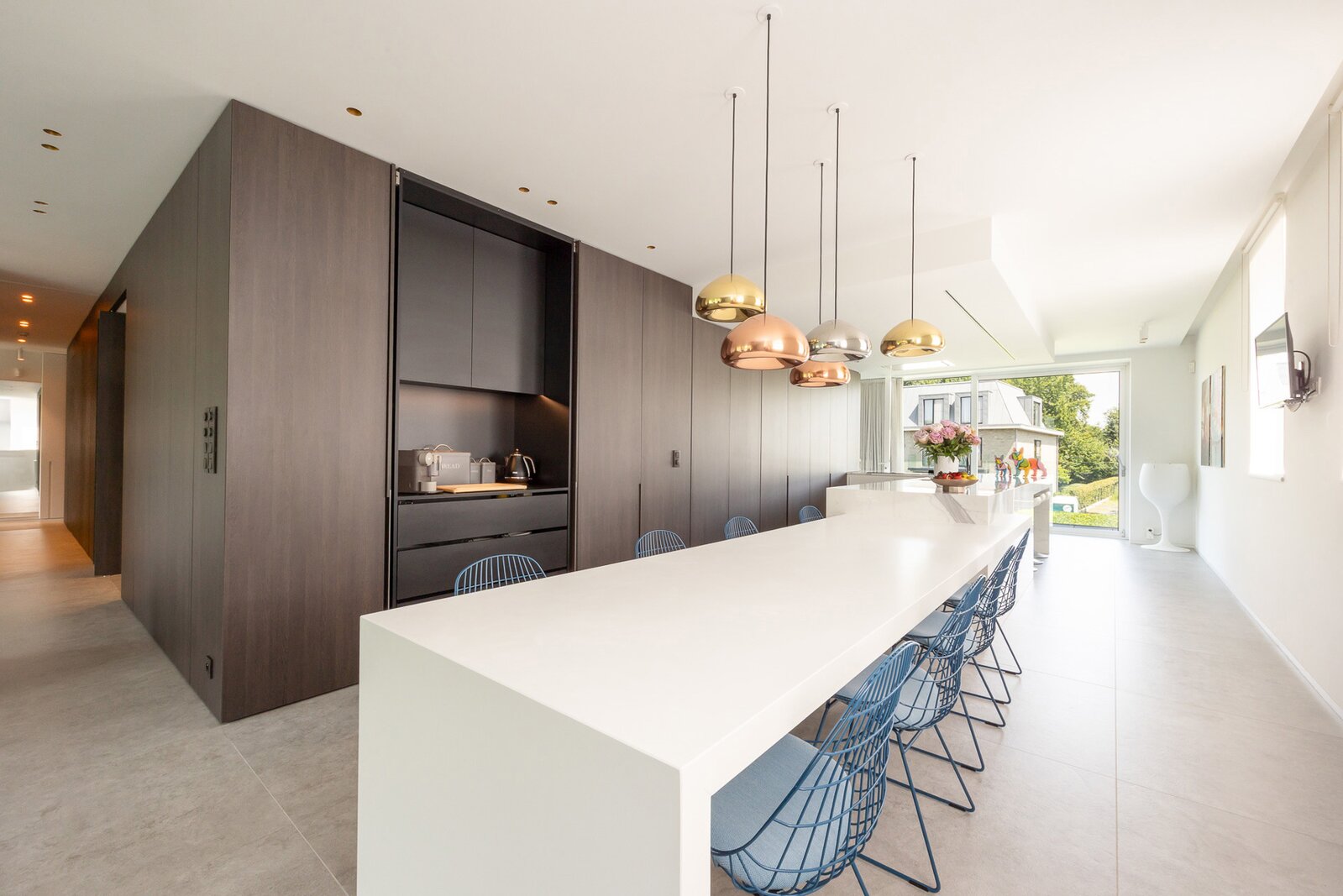 De volledige afwerking gebeurde met hoogwaardige materialen en uitzonderlijk oog voor detail. Overal is gekozen voor designer LED-verlichting en LED-stripverlichting in alle kasten.