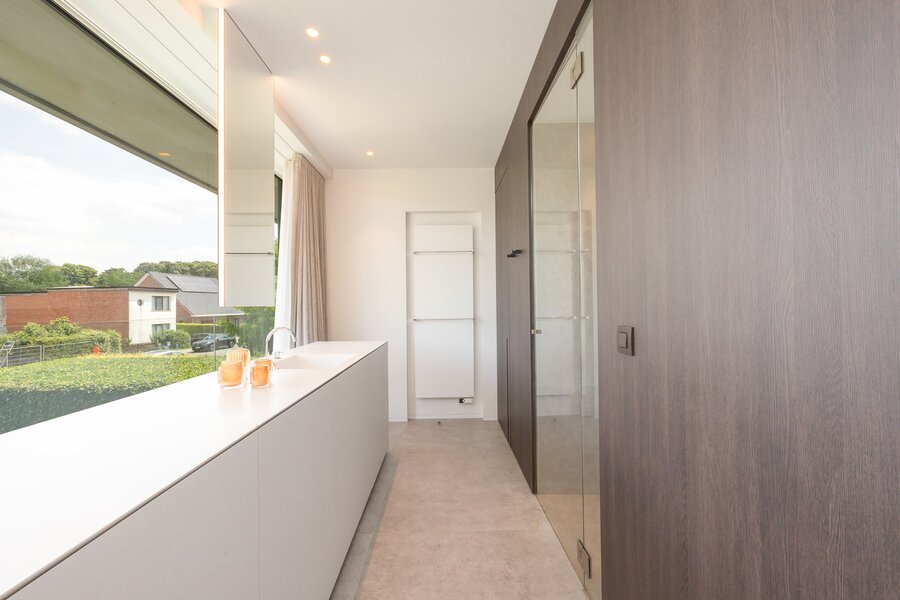 De 3de slaapkamer 13m² beschikt over een ingemaakte kastenwand. De naastgelegen badkamer van 4m² voorzien van een inloopdouche, lavabomeubel en spiegelkasten.