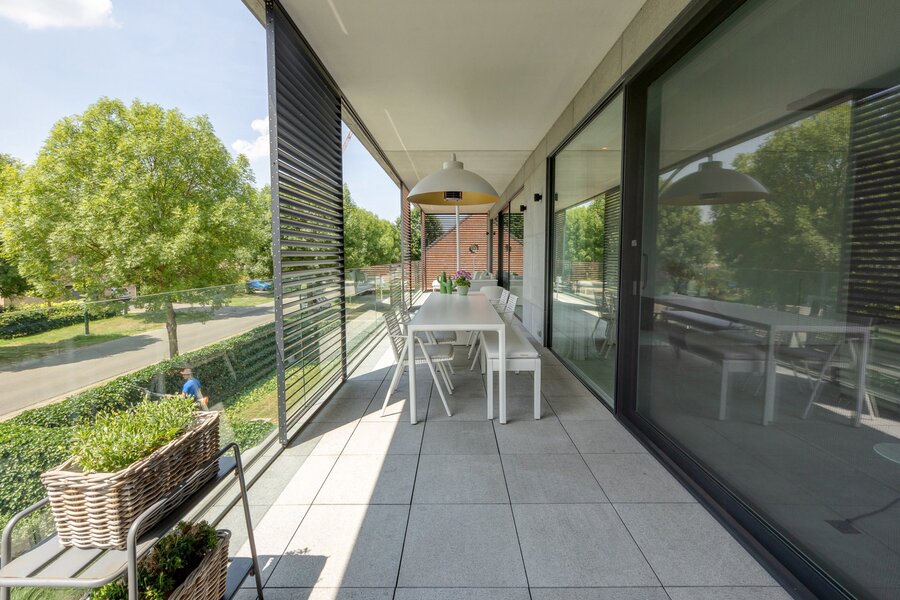 Het appartement is uitgerust met een Bose soundsysteem, waterdrukverhoger, waterontharder, pivoterende blokdeuren, Vola kranen, zonnepanelen, regenwaterput, aluminium ramen met dubbele beglazing en zonwerende beglazing. Verwarming gebeurt via een Vaillant hoogrendements gasketel met een boiler gekoppeld aan zonnepanelen, gecombineerd met vloerverwarming met multi-zones.