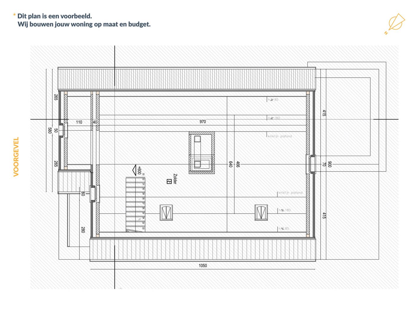 Via een vaste trap bereik je de zolderverdieping van 54,6 m² die nog volledig naar wens kan worden ingericht als extra kamer, bureau of hobbyruimte.